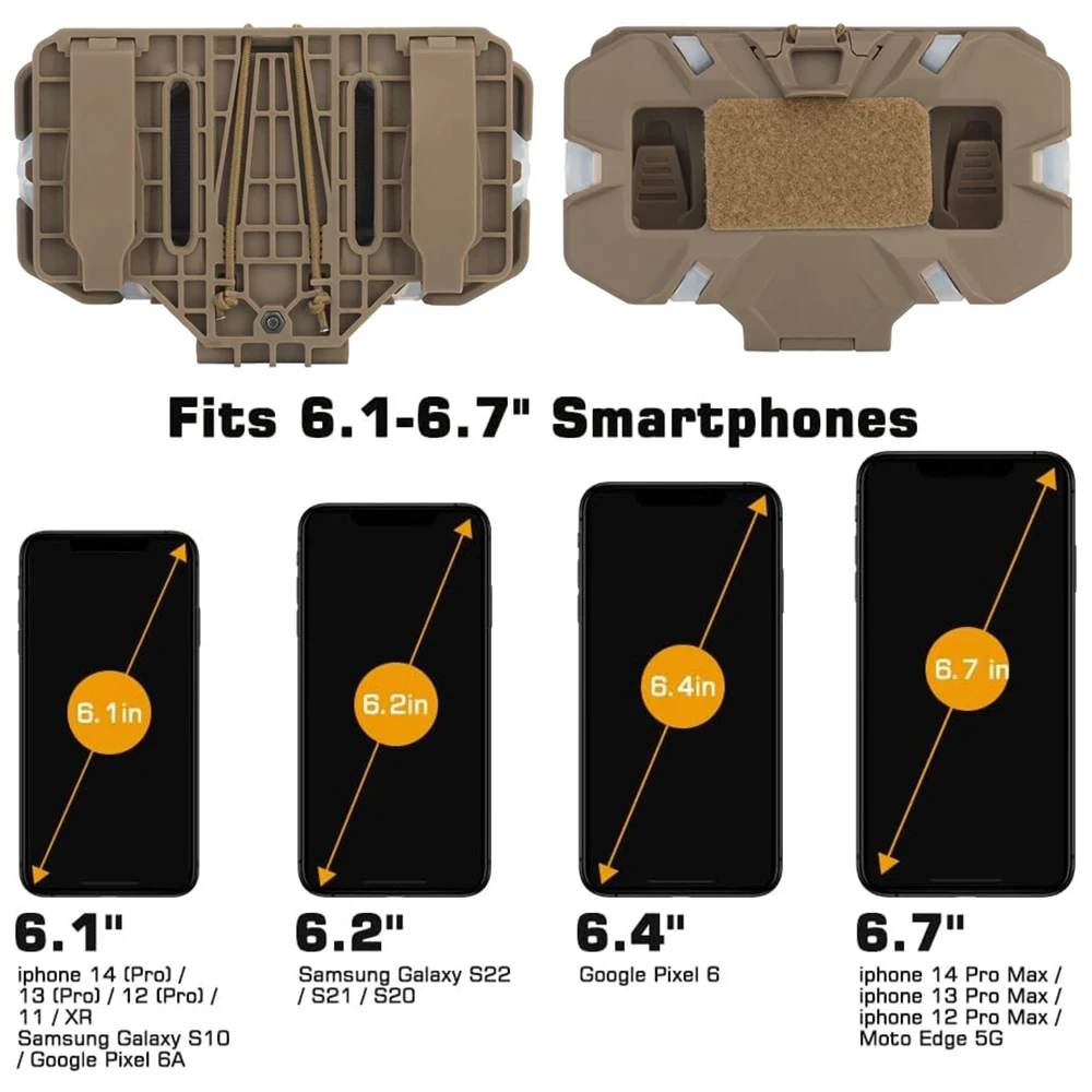 Sostenga su teléfono de forma segura: diseñado con múltiples tiras antideslizantes de silicona en el interior, el soporte táctico para teléfono puede fijar eficazmente su teléfono al aire libre, evitando que el teléfono se caiga accidentalmente al moverse.