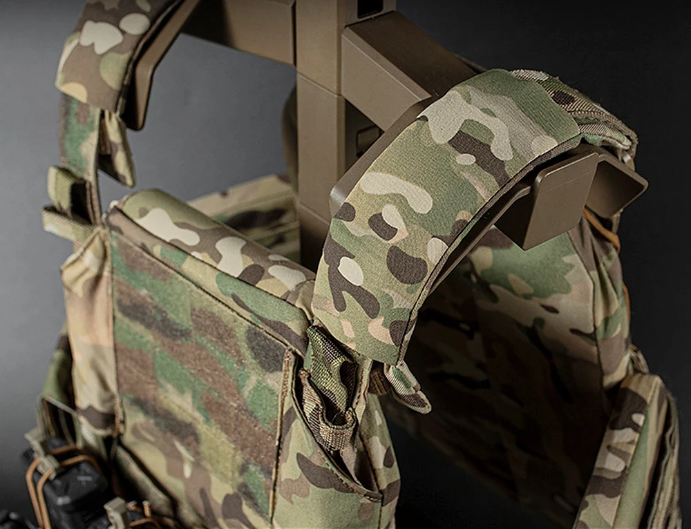 ⑤ Fajín MOLLE con paneles de entrada laterales para ponerse y quitarse, y la tapa de la placa integra una armadura dura.