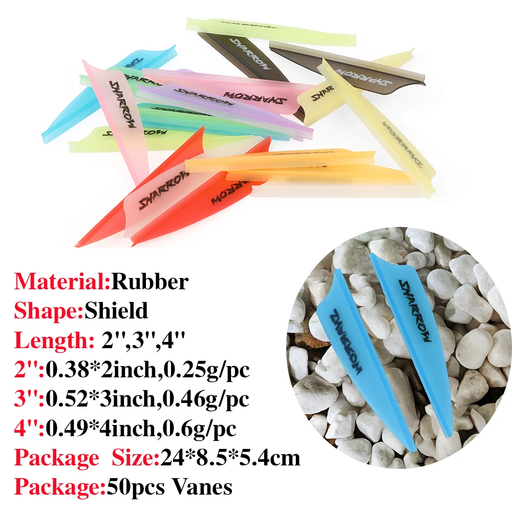 2/3/4 inch Arrow Feather 50pcs Rubber Vanes Archery Fletching Bow Arrow Fletches Shooting Hunting Target Practice Accessories