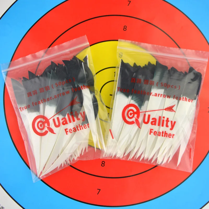 50 piezas 5 "plumas de Tiro con Arco Fletches de flecha Escudo de caída forma de corte varillas de flecha Natural alas derecha para accesorios de tiro de caza