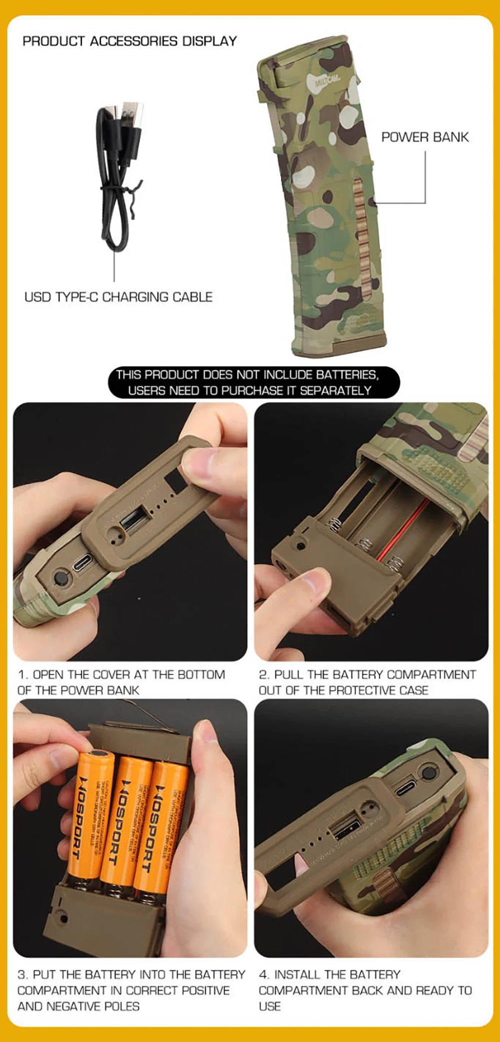 PMAC Mag Magazine modelo reemplazable cargador de batería carcasa exterior tipo C línea luz indicadora de potencia sin baterías