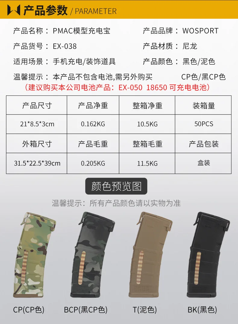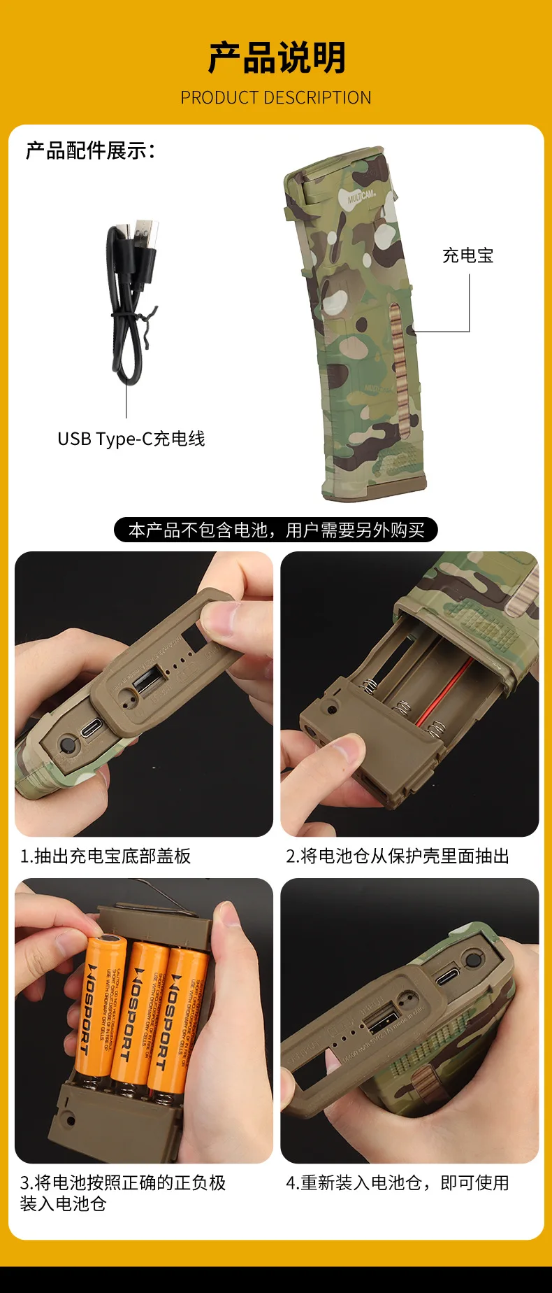 Pmac Modelo 1:1 Aspecto de simulación estilo revista, carcasa de banco de energía sin batería Camuflaje Mc