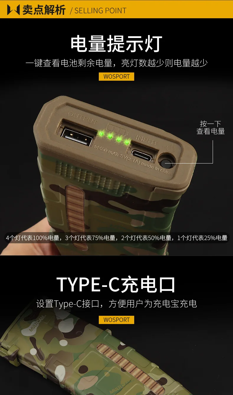 PMAC tipo revista modelo POWER BANK, caja recargable de batería reemplazable, indicador de batería, batería no incluida