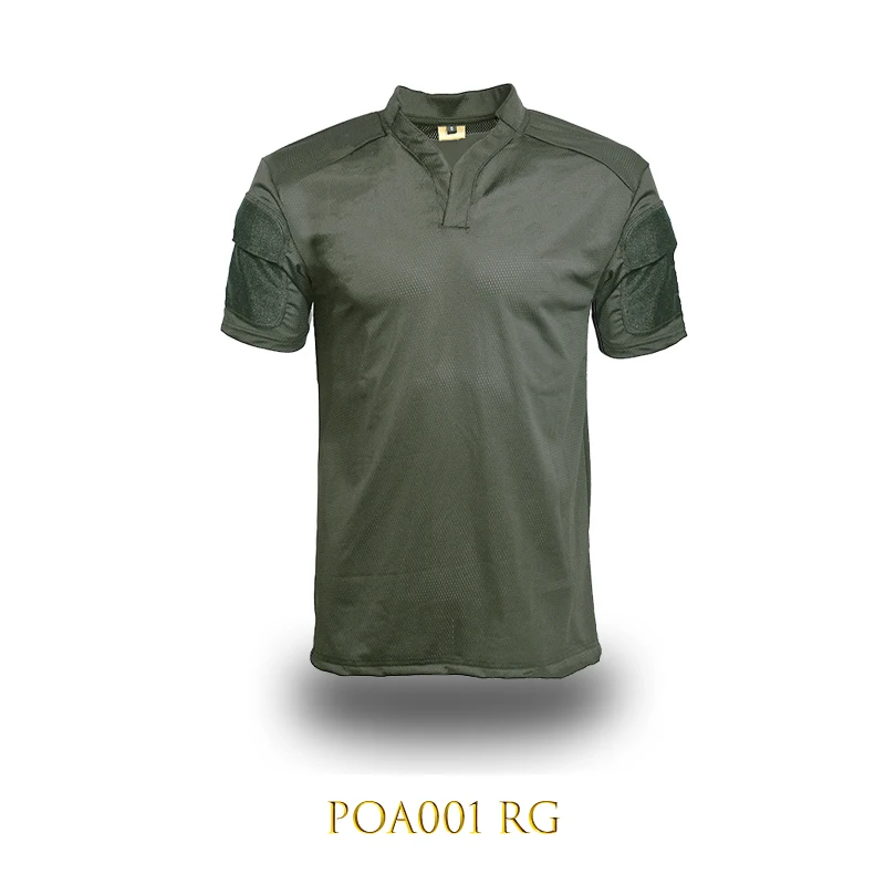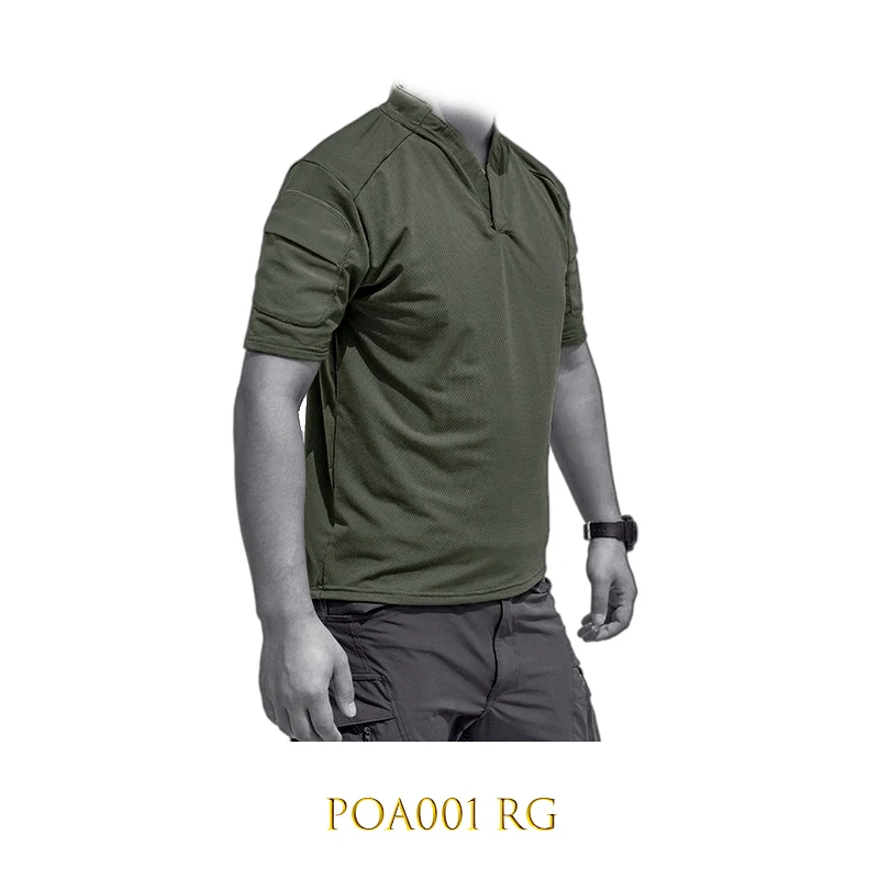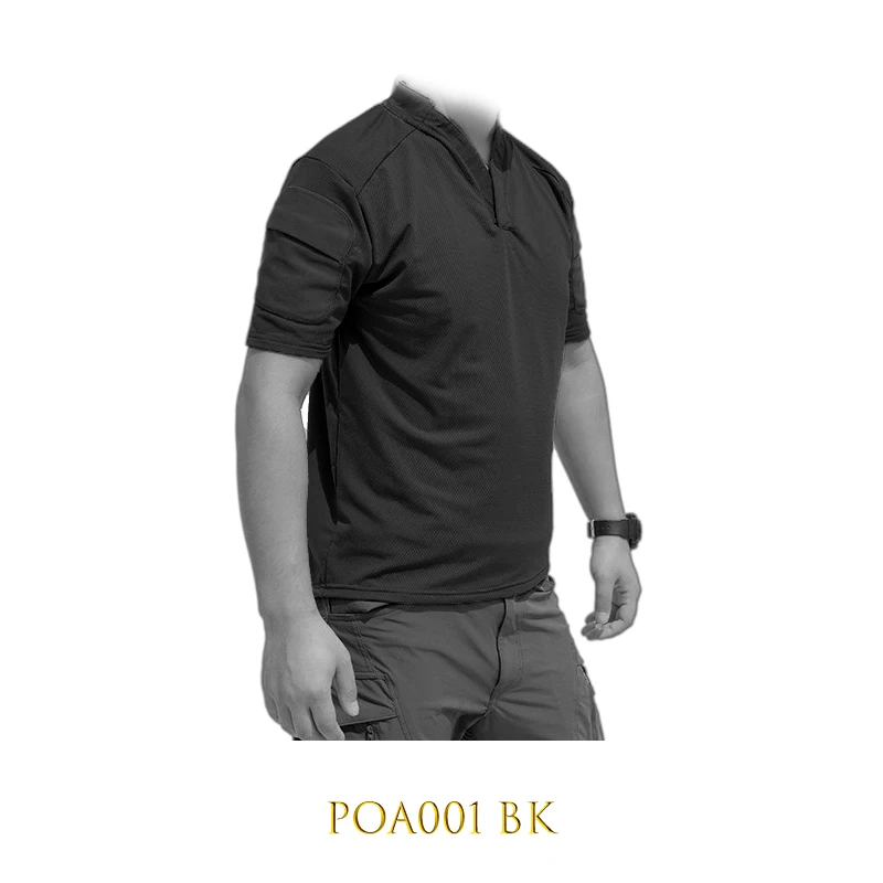 POA001-Camiseta táctica de secado rápido para hombre, camisa de manga corta con solapa de camuflaje para verano