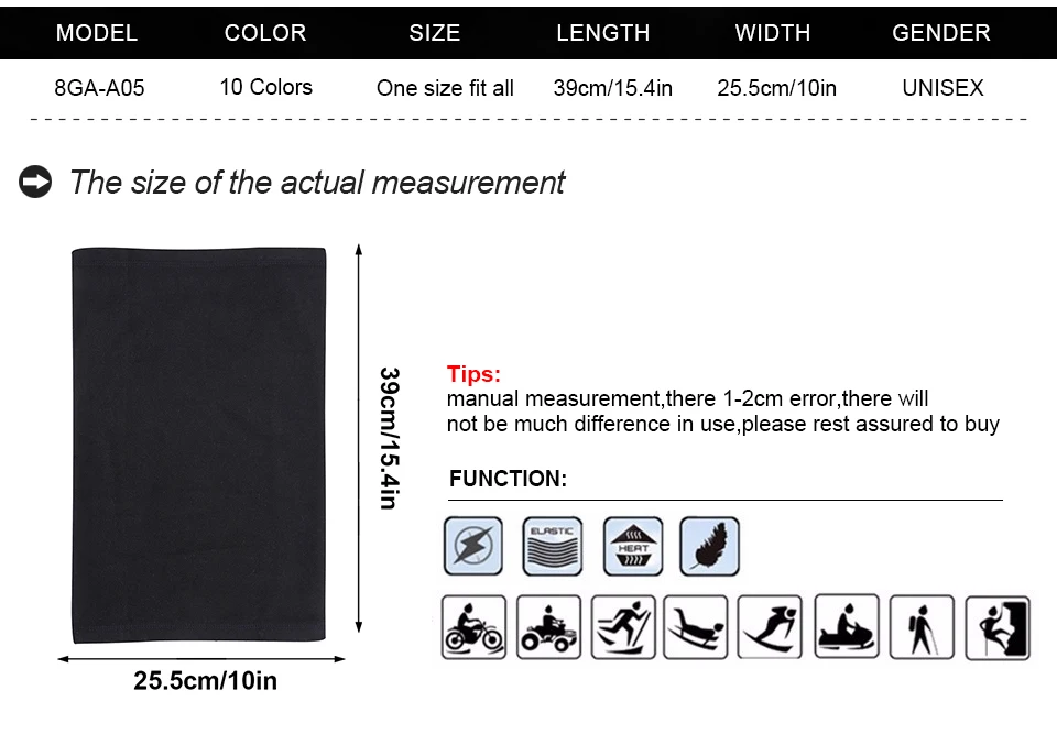 Esta polaina para el cuello más larga, liviana y cómoda, también es extremadamente versátil, con más de diferentes opciones de uso, puede usarla como calentador de cuello, mascarilla, gorro, gorro de calavera, diadema, pañuelo de tubo y forro para casco.