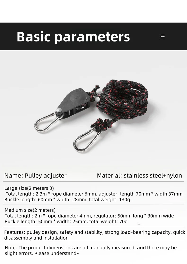 Polea De Metal para lámpara de crecimiento de plantas, accesorio de iluminación, cuerda de elevación ajustable, gancho de hebilla