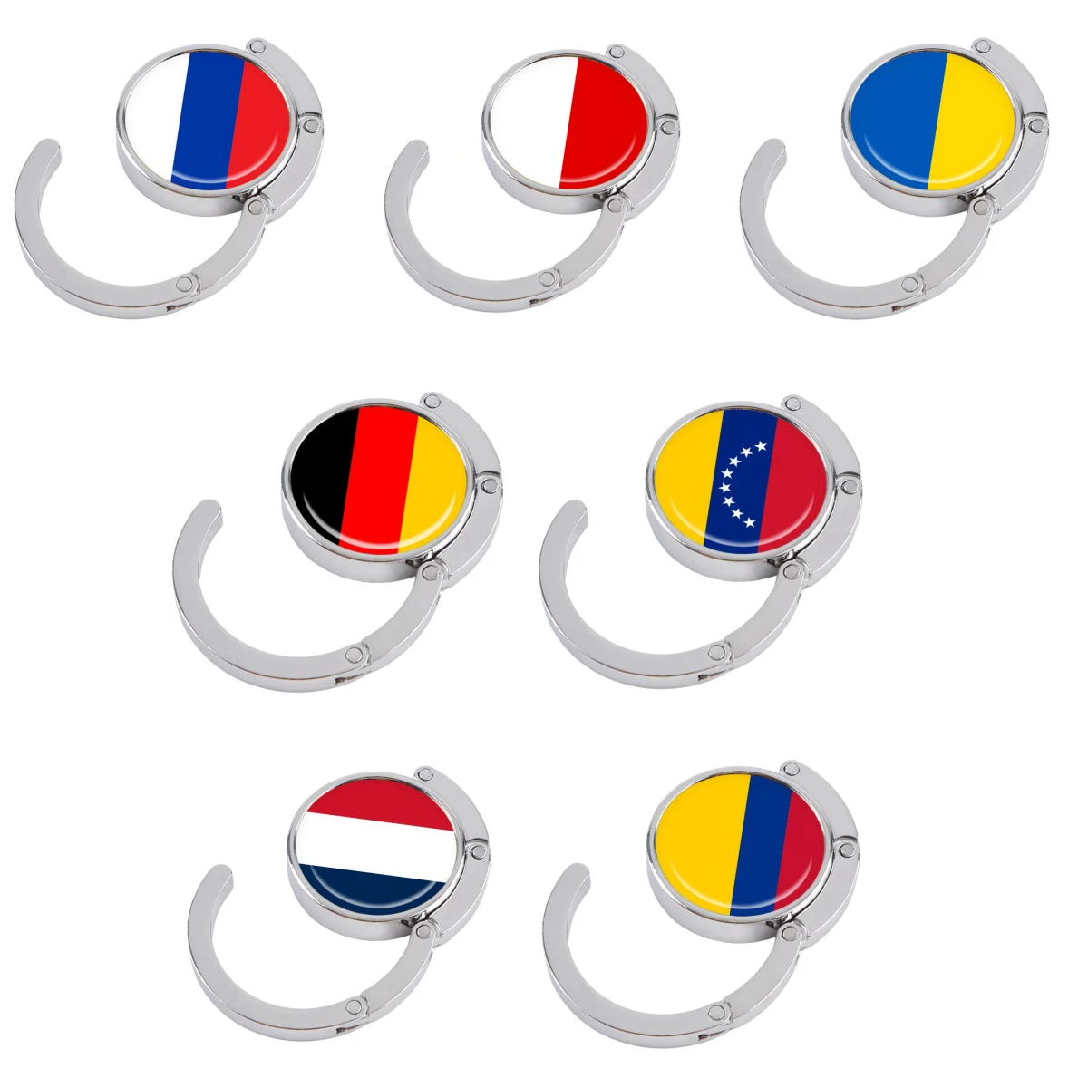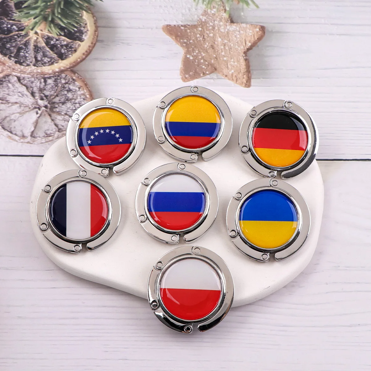 Polish Flag Poland Handbag Hooks Folding Metal Table Bag Holders Portable Purse Hangers Parts Accessories Round Non-Slip Hooks