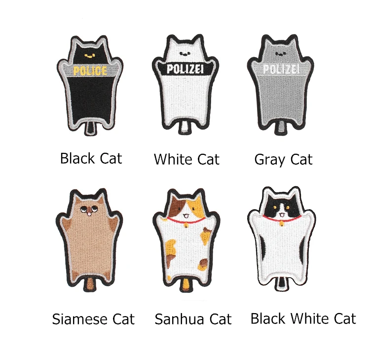 POLIZEI-Parches bordados para ropa Mochila Cute Tactical Animal Badge Negro, Blanco, Gris, Siamés, Sanhua Cats