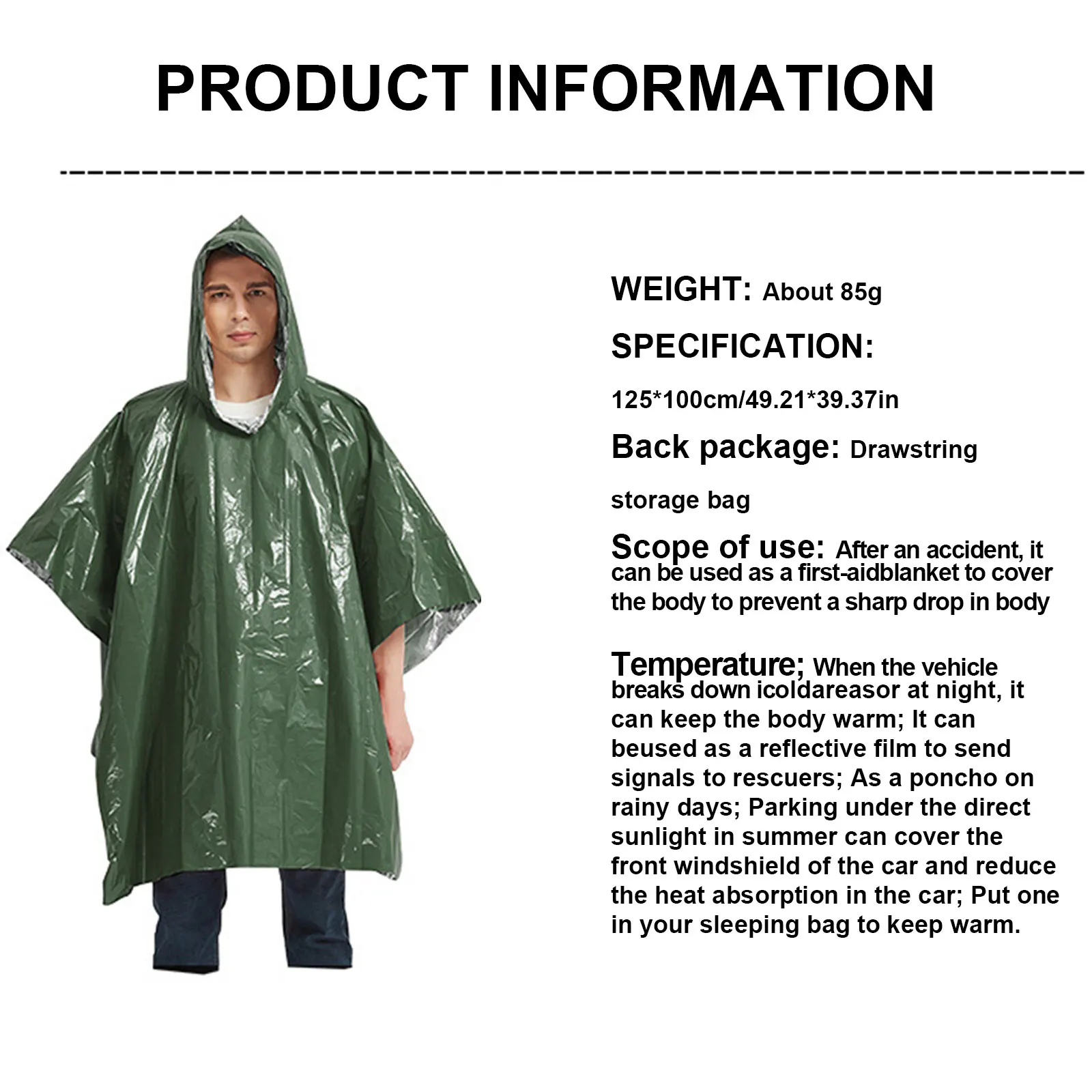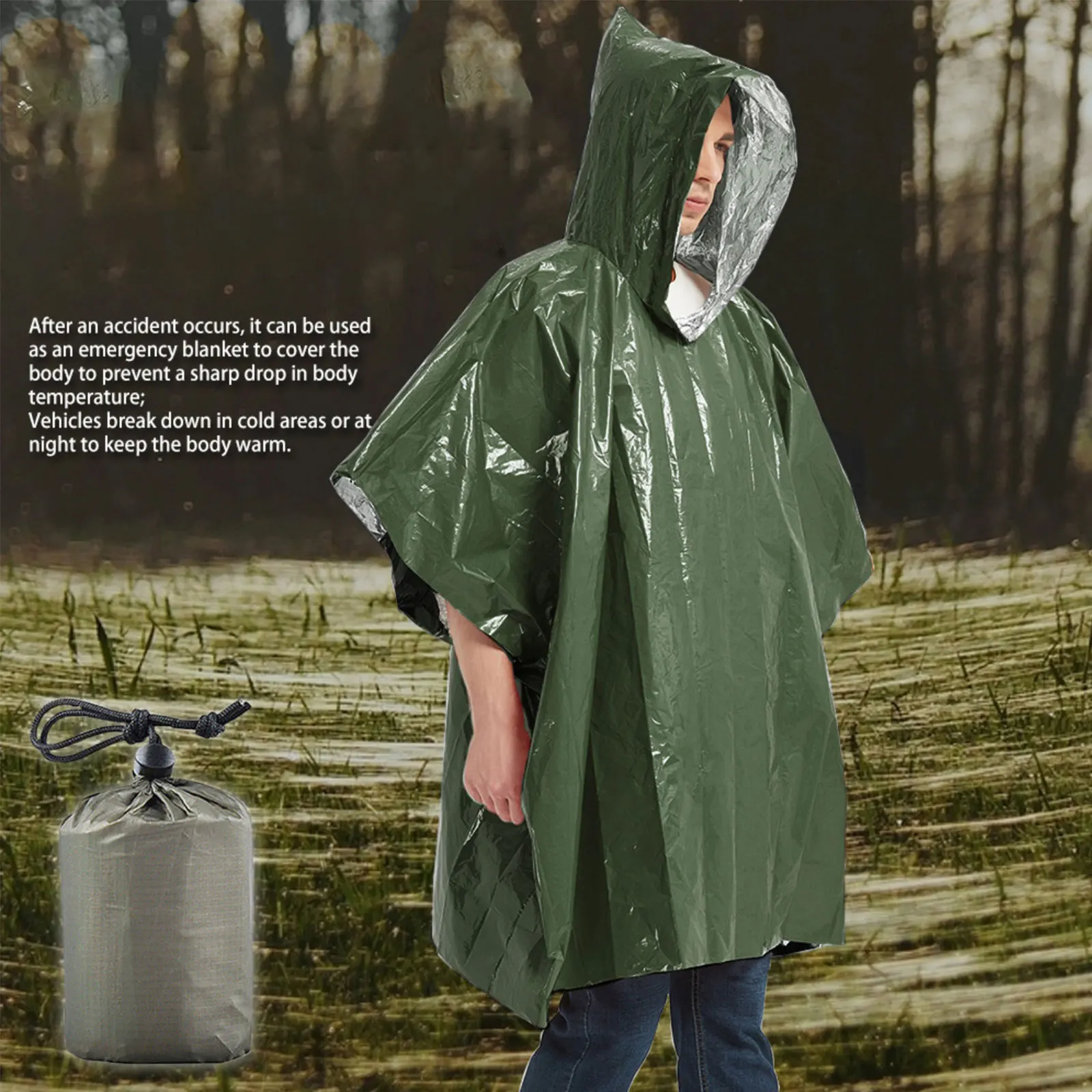 Poncho de lluvia de supervivencia de emergencia para senderismo y acampada, manta térmica, impermeable, reflectante de calor