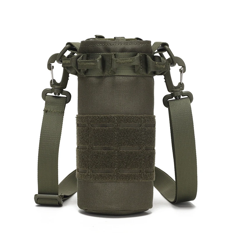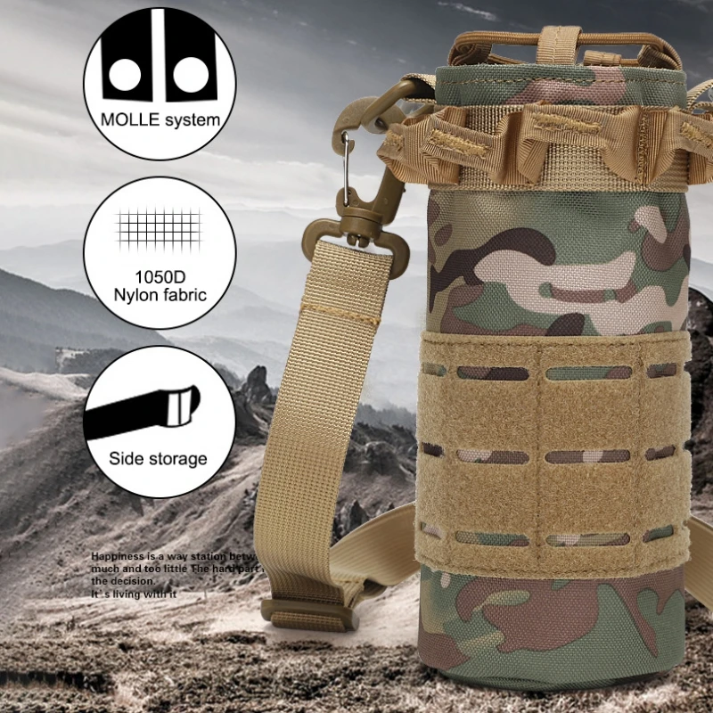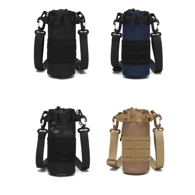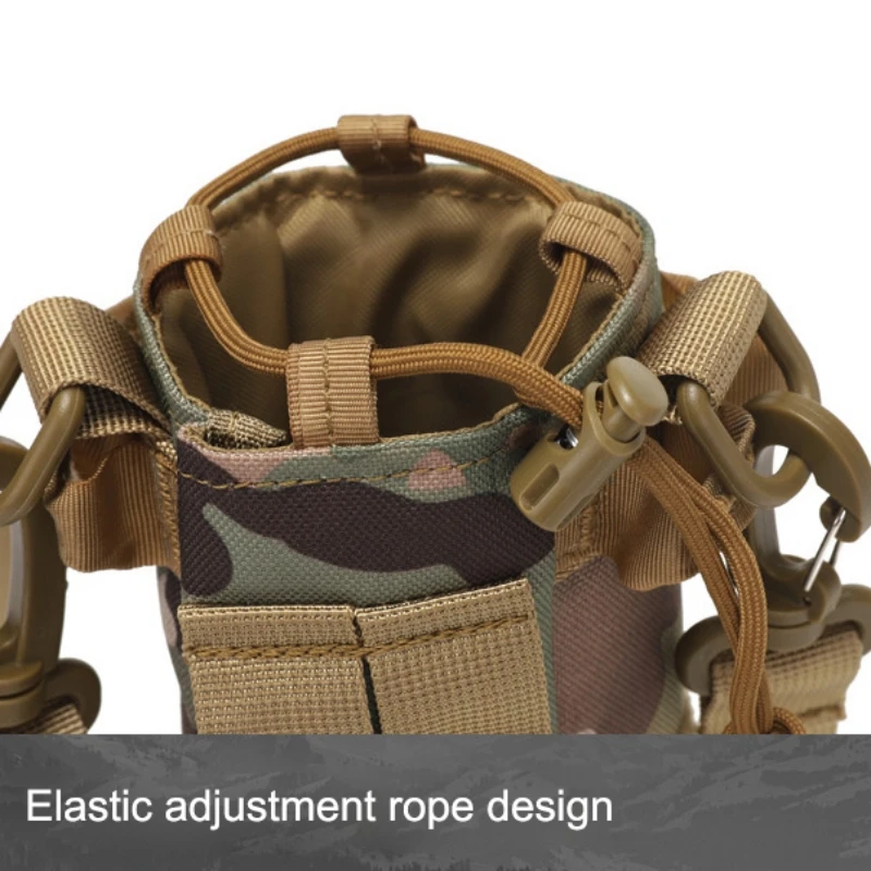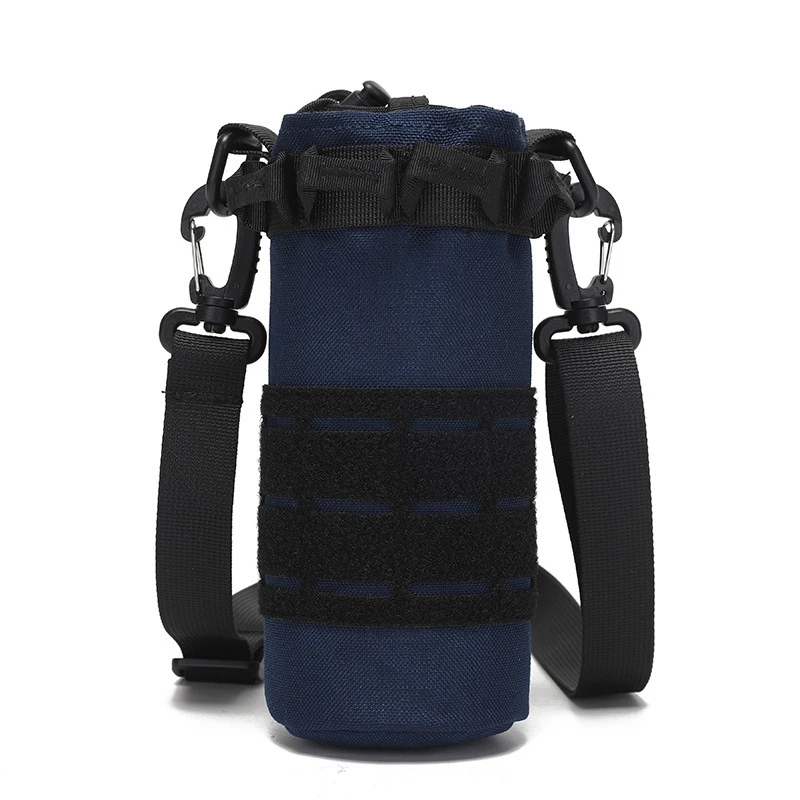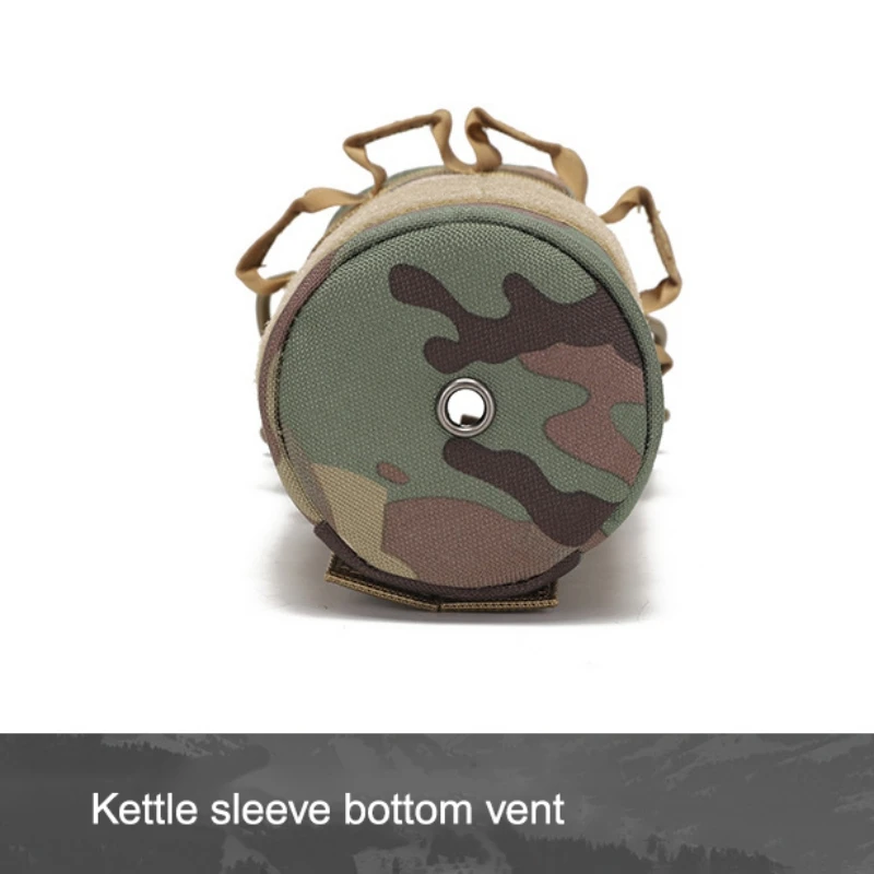 Diámetro: 8cm, altura 21cm, puede acomodar 1L botella de agua, la parte posterior de la cubierta de la tetera tiene accesorios extendidos que se pueden colgar en la mochila y el cinturón, viaje conveniente, siempre que la mochila proporcione un punto para colgar, puede colgarla en cualquier momento.