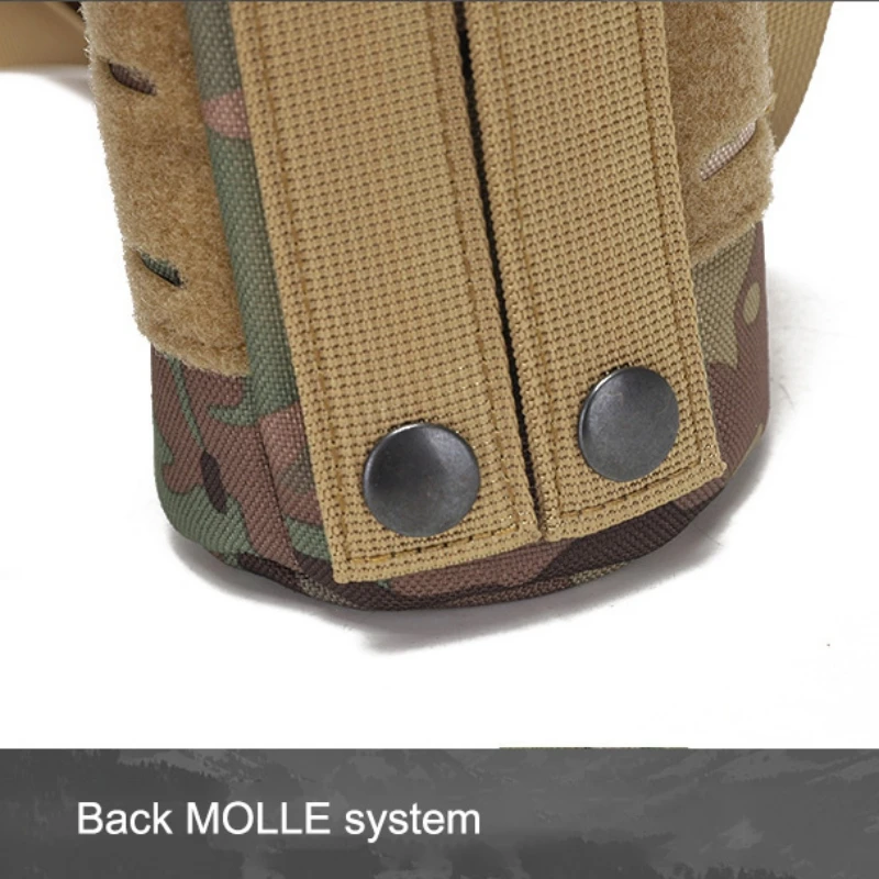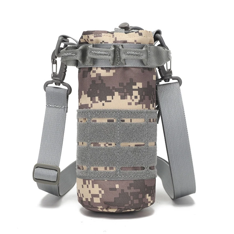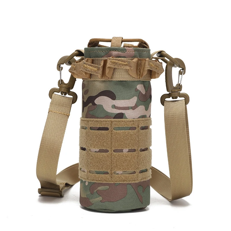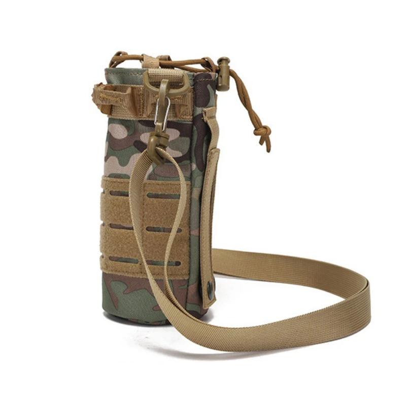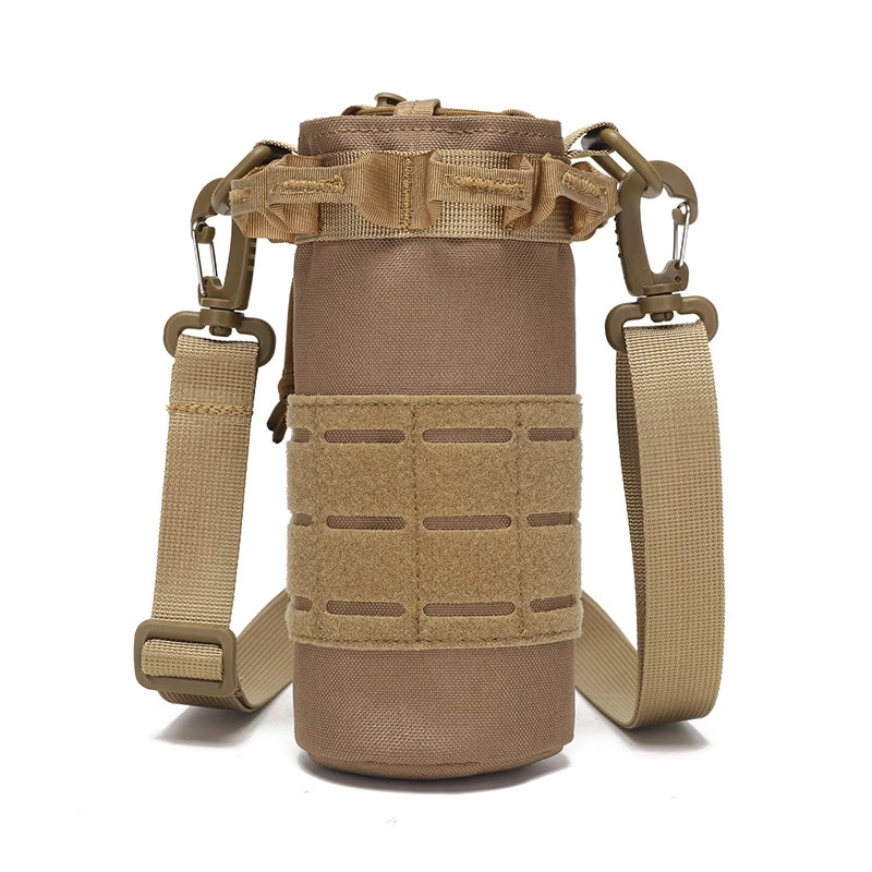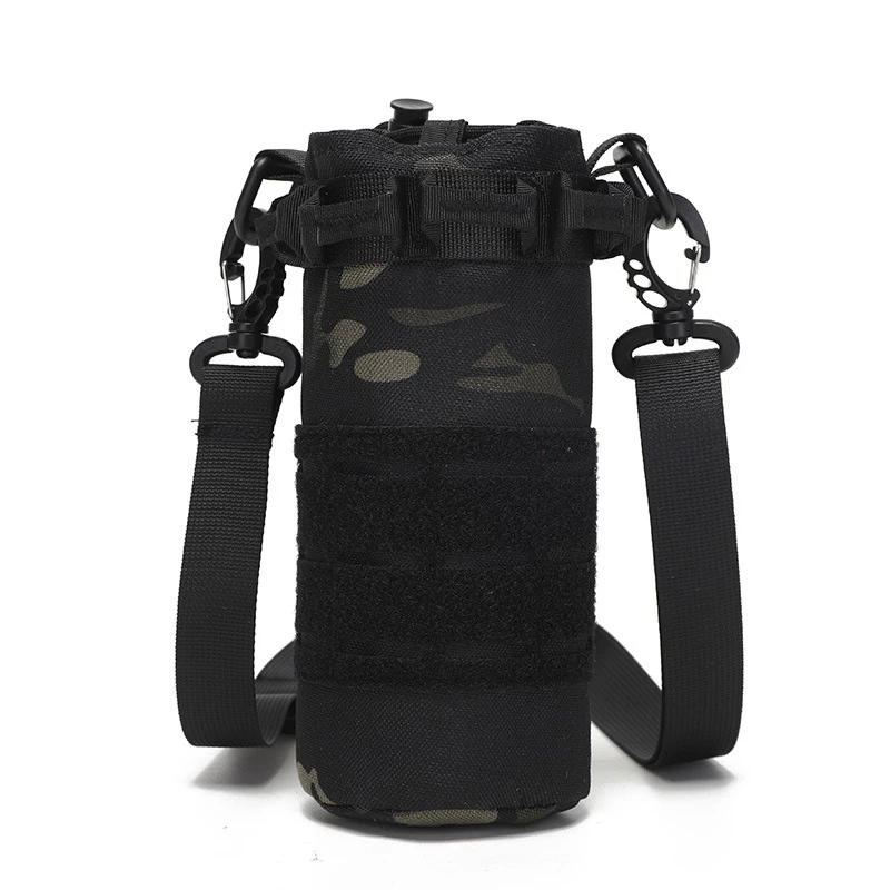 Diámetro: 8cm, altura 21cm, puede acomodar 1L botella de agua, la parte posterior de la cubierta de la tetera tiene accesorios extendidos que se pueden colgar en la mochila y el cinturón, viaje conveniente, siempre que la mochila proporcione un punto para colgar, puede colgarla en cualquier momento.