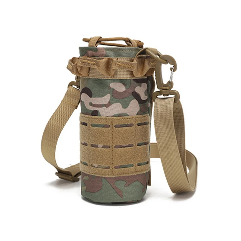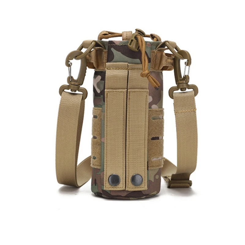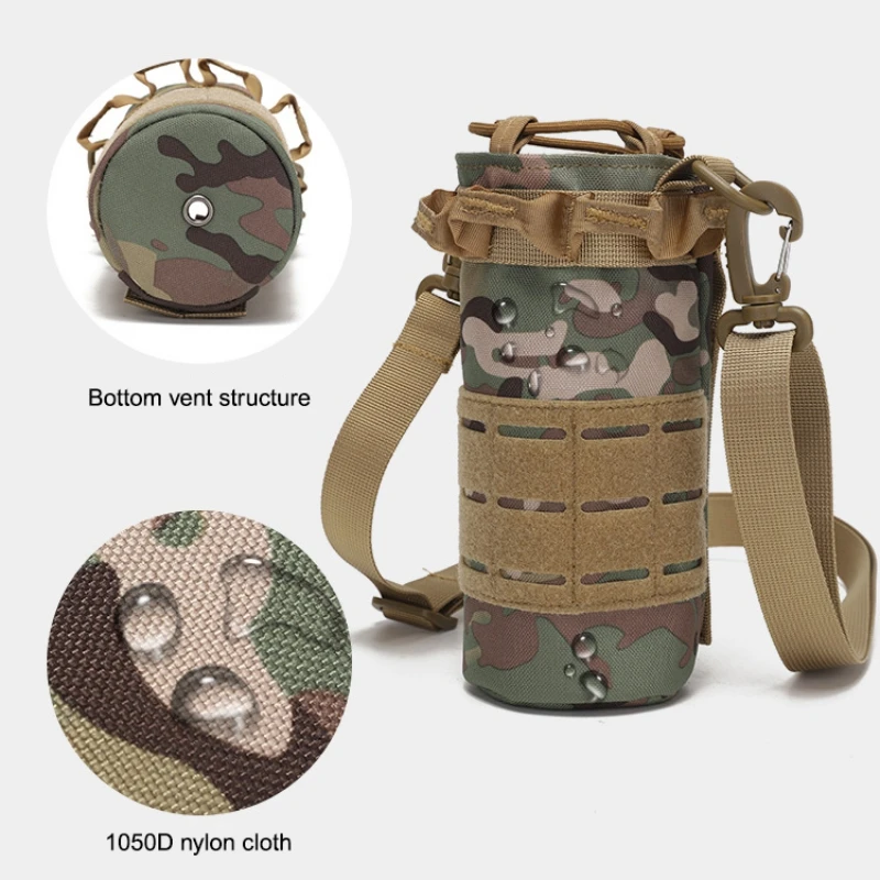 Hay orificios de ventilación en la parte inferior para evitar la acumulación de agua, ventilación transpirable y la Bolsa de la botella de agua tiene una correa de hombro extraíble.