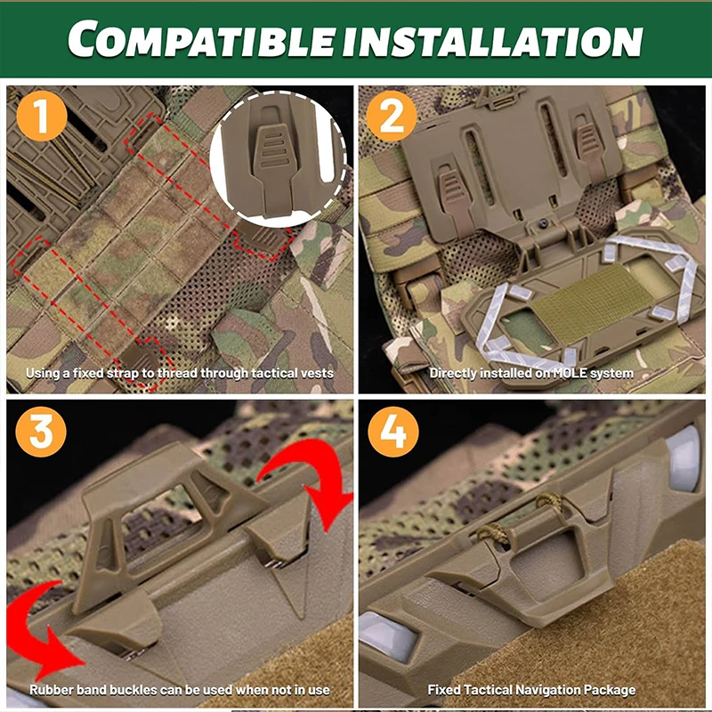 4.Soporte estilo chaleco: el soporte para placa telefónica se puede acoplar a un chaleco o mochila con correas MOLLE, lo que le brinda acceso rápido a su teléfono inteligente en todo momento.