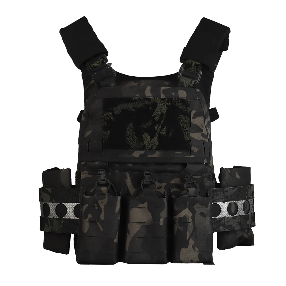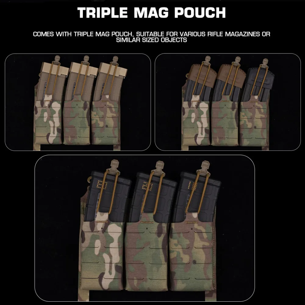 V5 FCPC Portador de placa de caza estilo Ferro Modular MOLLE Chaleco táctico Airsoft con triple bolsa para revistas con cremallera en el panel trasero Banger