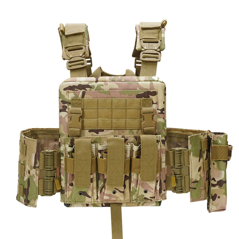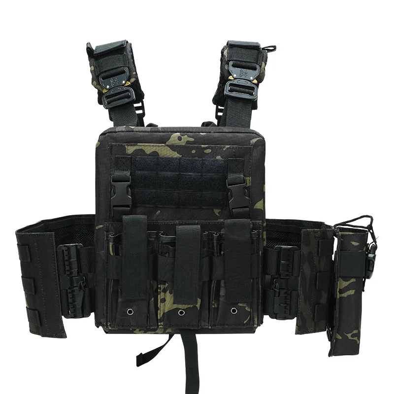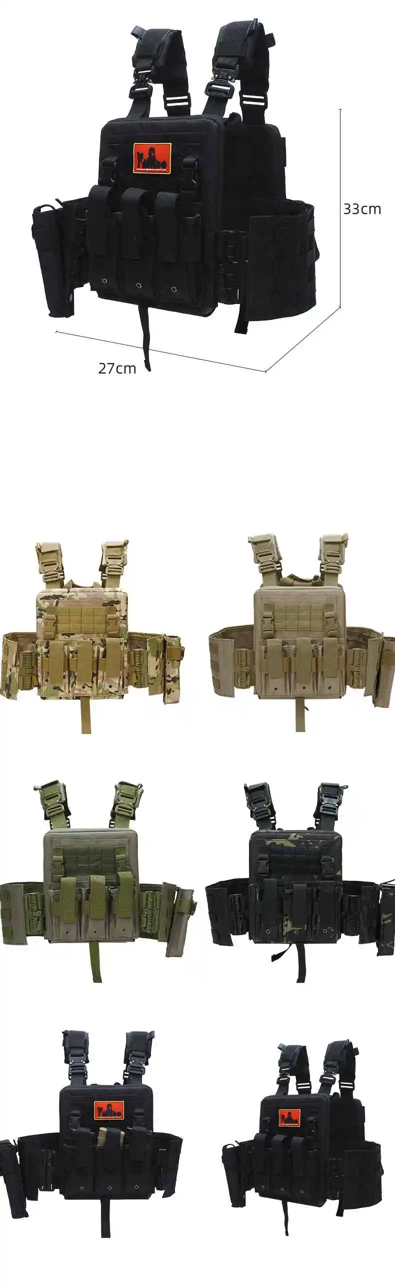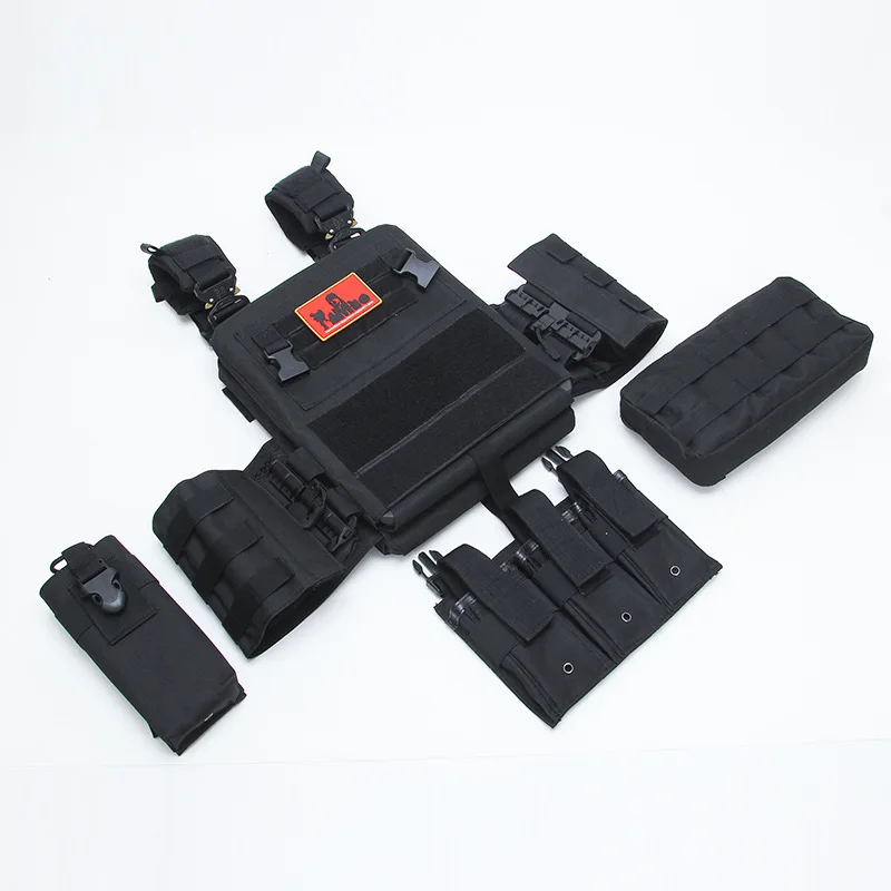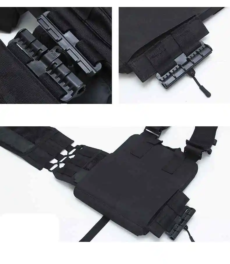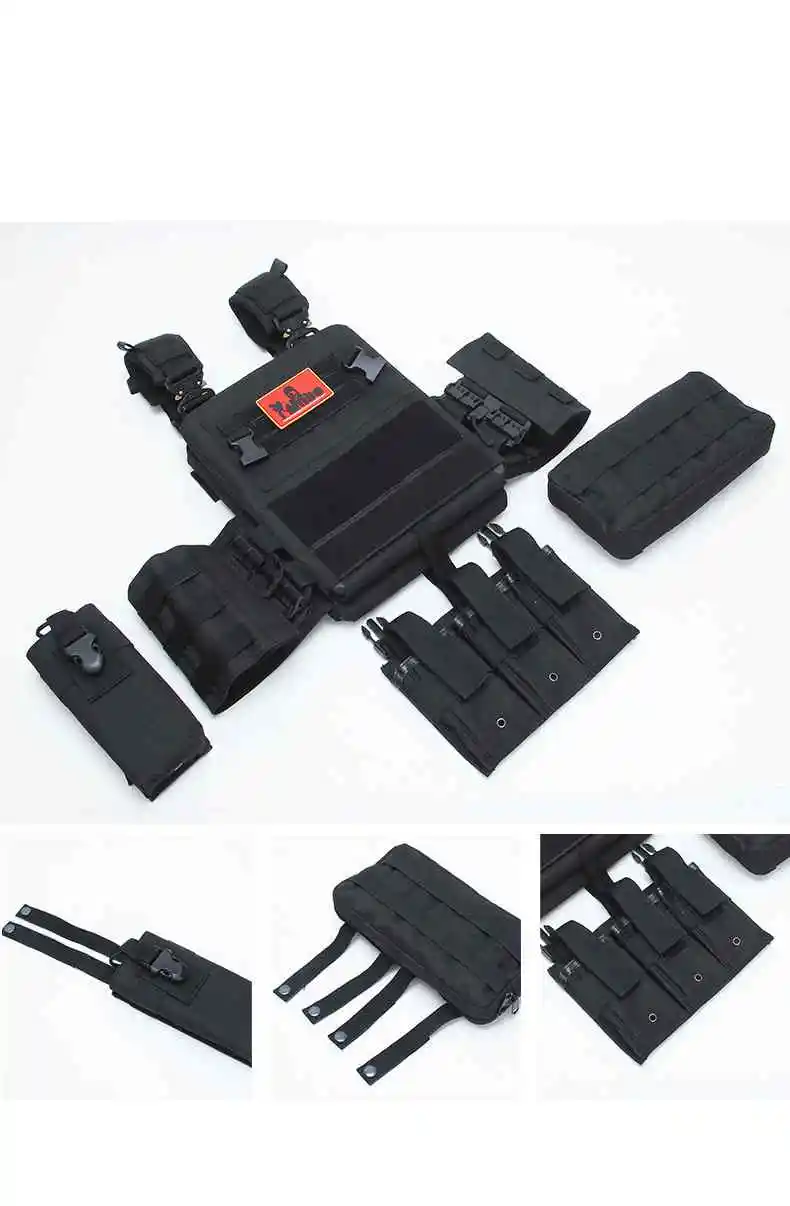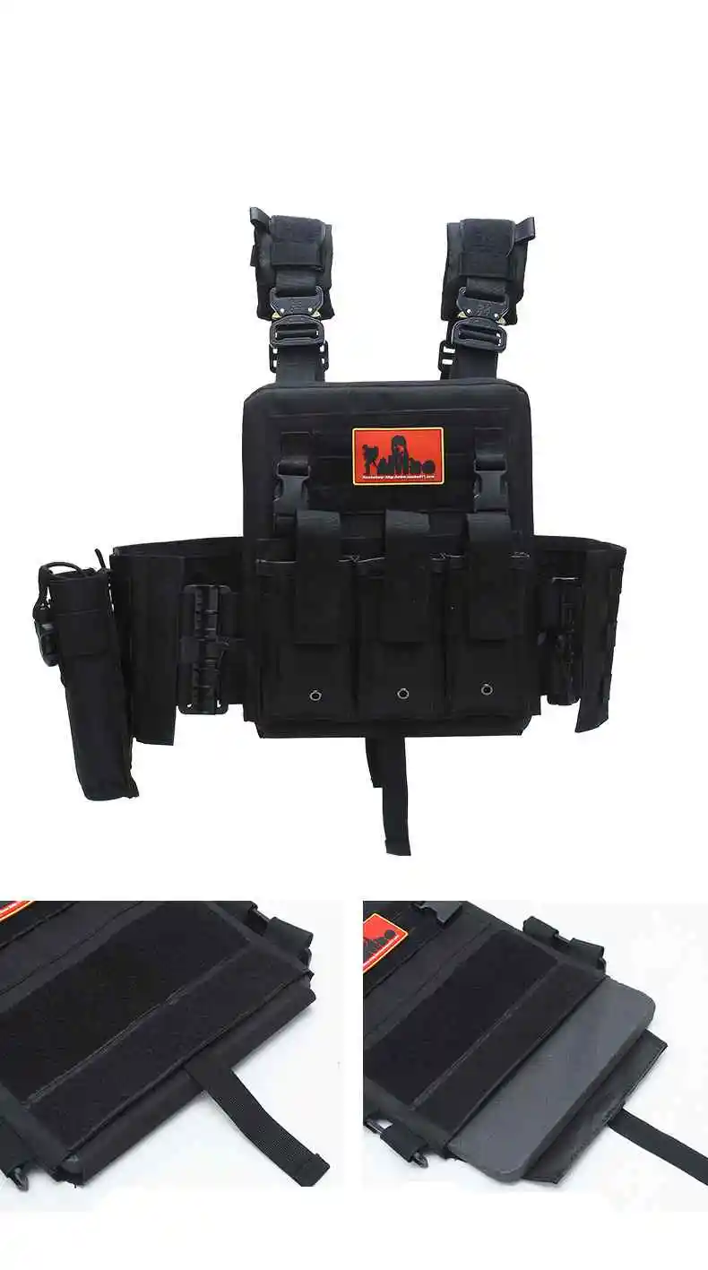 1. Bolsa de hervidor de liberación rápida La bolsa lateral para botella de agua montada en MOLLE tiene una gran capacidad y es fácil de alcanzar 2. Insignia velcr0 Velcr0 en las insignias delantera y trasera, trae lo que quieras 3.Velcr0 de mano El dobladillo de nylon cabe cómodamente en la mano y no lastima las manos, y el chaleco se puede pegar cuando no está en uso 4. Cargador triple El diseño de la revista multifuncional le permite llevar suficiente material de entrenamiento 5. Correas de hombro transpirables El diseño de malla de panal transpirable con correa para el hombro es cómodo y absorbe el sudor, y es extraíble 6. Hebillas de metal pesado Correa de hombro a enchufe, hecha de metal, resistente a la abrasión y a los arañazos, diseño de liberación rápida 7. Bolsa de almacenamiento grande Gran bolsillo de almacenamiento para artículos de entrenamiento de viaje diario