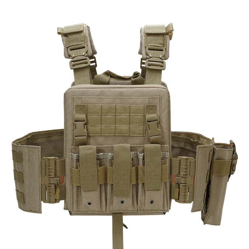 1. Bolsa de hervidor de liberación rápida La bolsa lateral para botella de agua montada en MOLLE tiene una gran capacidad y es fácil de alcanzar 2. Insignia velcr0 Velcr0 en las insignias delantera y trasera, trae lo que quieras 3.Velcr0 de mano El dobladillo de nylon cabe cómodamente en la mano y no lastima las manos, y el chaleco se puede pegar cuando no está en uso 4. Cargador triple El diseño de la revista multifuncional le permite llevar suficiente material de entrenamiento 5. Correas de hombro transpirables El diseño de malla de panal transpirable con correa para el hombro es cómodo y absorbe el sudor, y es extraíble 6. Hebillas de metal pesado Correa de hombro a enchufe, hecha de metal, resistente a la abrasión y a los arañazos, diseño de liberación rápida 7. Bolsa de almacenamiento grande Gran bolsillo de almacenamiento para artículos de entrenamiento de viaje diario