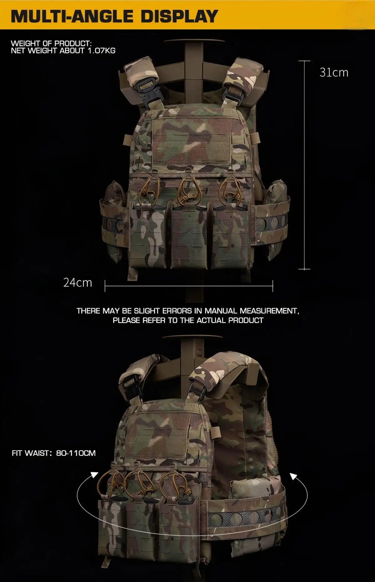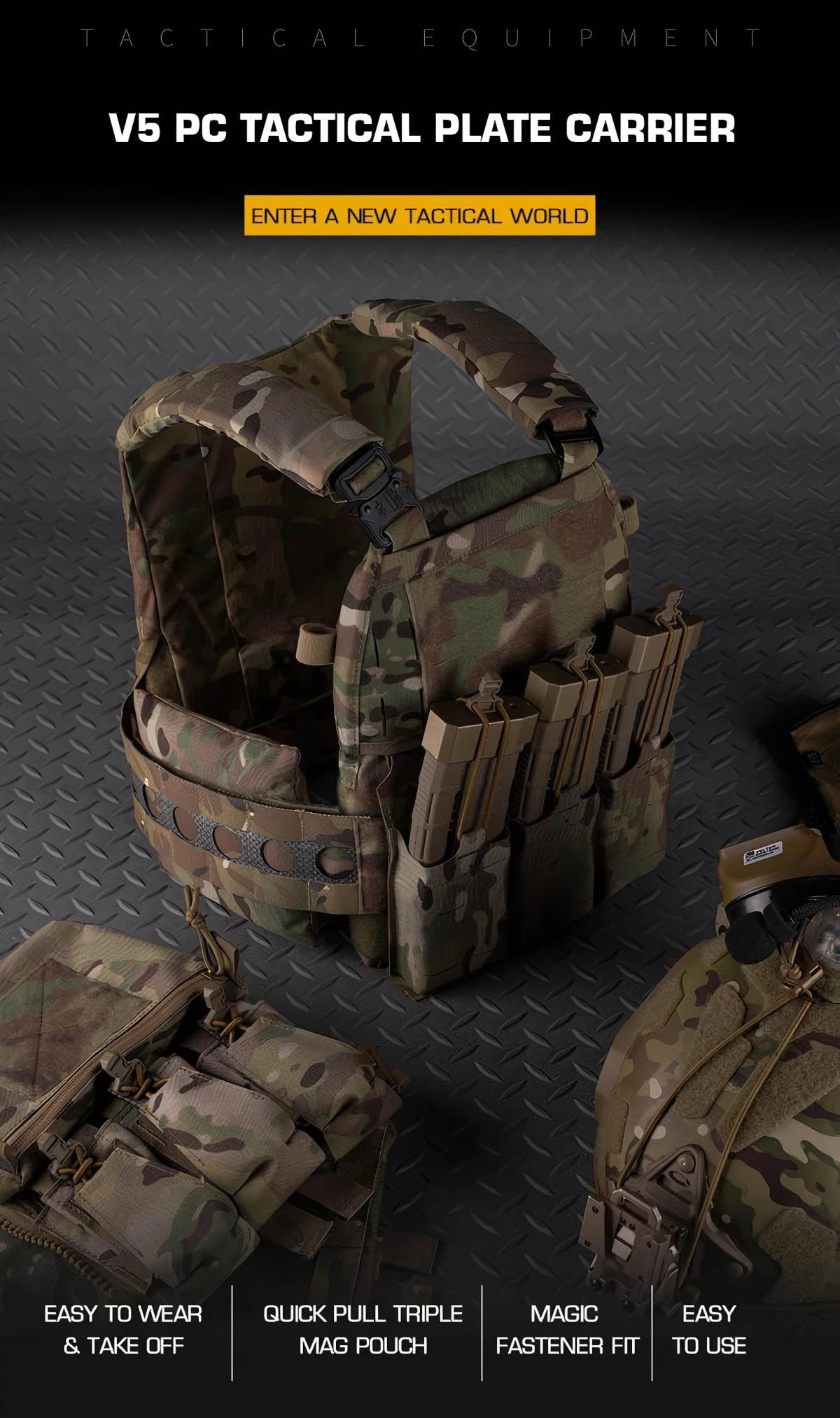 ENTER A UN NUEVO MUNDIAL TÁCTICO donde la agilidad se encuentra listo.El portaplacas táctico para PC V5 redefine la moderna capacidad de carga centrándose en la velocidad, la comodidad y la modularidad.Con un peso de solo 1,07 kg, este soporte liviano elimina el volumen sin sacrificar la capacidad, integrando características críticas como una bolsa magnética Triple Quick-Pull directamente en su diseño.Diseñada para un movimiento dinámico, es la base ideal para airsoft, entrenamiento táctico y simulaciones profesionales.