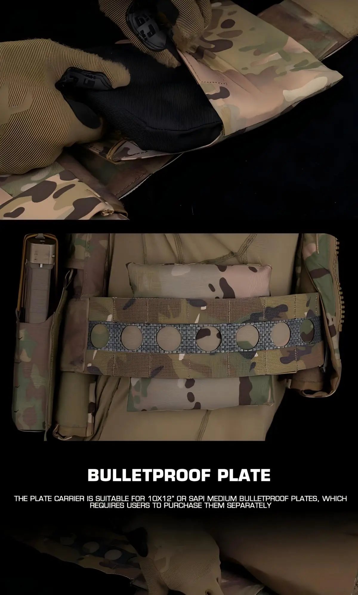 ⚠️ Nota importante: Este es un portaplacas diseñado para sujetar placas balísticas.Las placas balísticas/balísticas antibalas NO están incluidas y deben comprarse por separado para brindar protección balística.