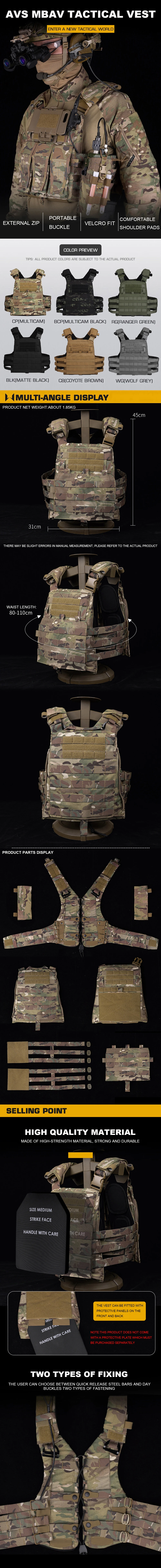Portador de placa táctica AVS MBAV Chaleco de caza Sistema adaptable MOLLE Airsoft Army Military Combat Body Armor Chaleco multifuncional