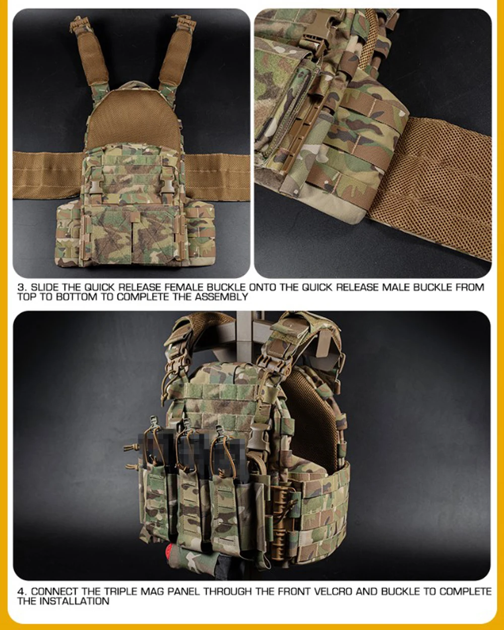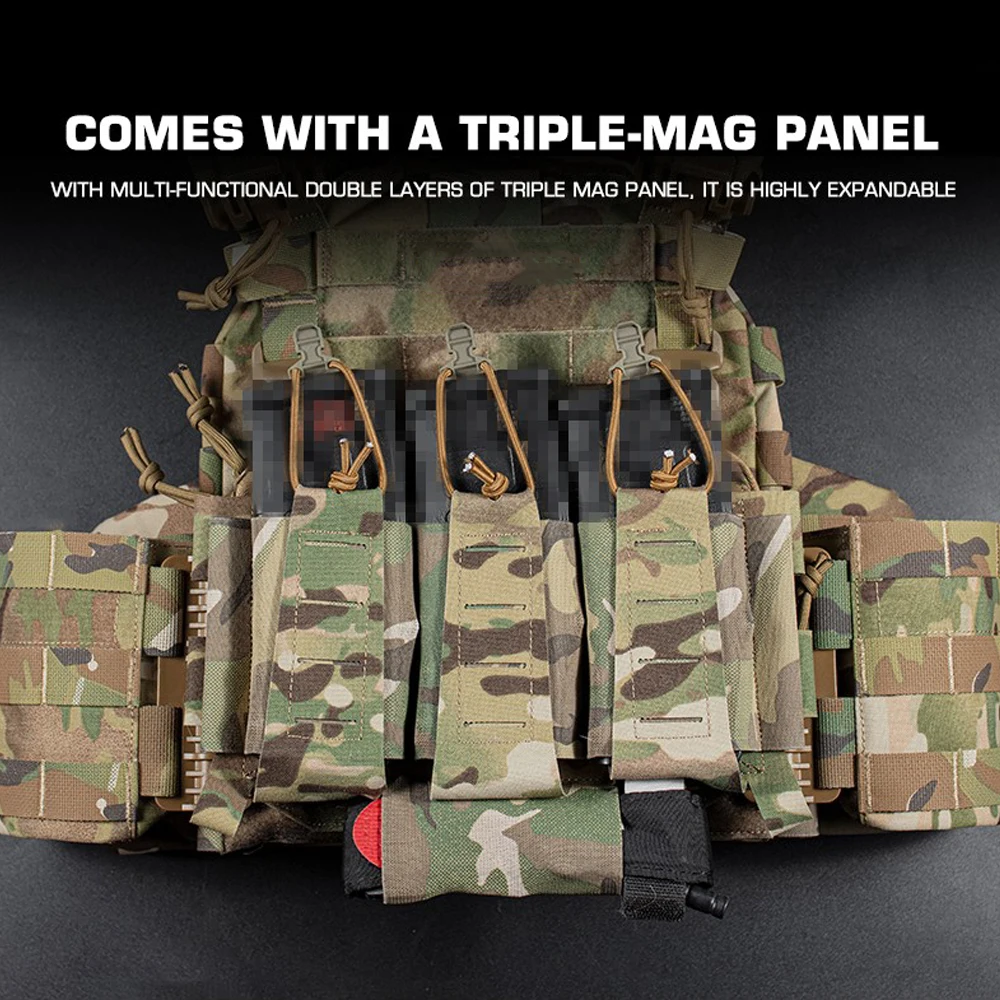 Portador de placa táctica, chaleco de caza ARC, sistema de liberación rápida MOLLE, bolsa triple para cargador, Panel frontal CS Wargame Airsoft Gear