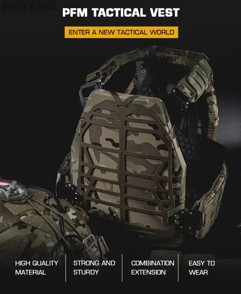 Nombre del producto: chaleco táctico PFM Número del producto: 1,98 kg Peso del producto: kg Color del producto: BLK,CB,WG,CP Material del producto: ABS + Nylon + Cordura Escenarios aplicables: actividades en equipo, juegos tácticos, accesorios de cine y televisión El paquete incluye: 1 * chaleco táctico