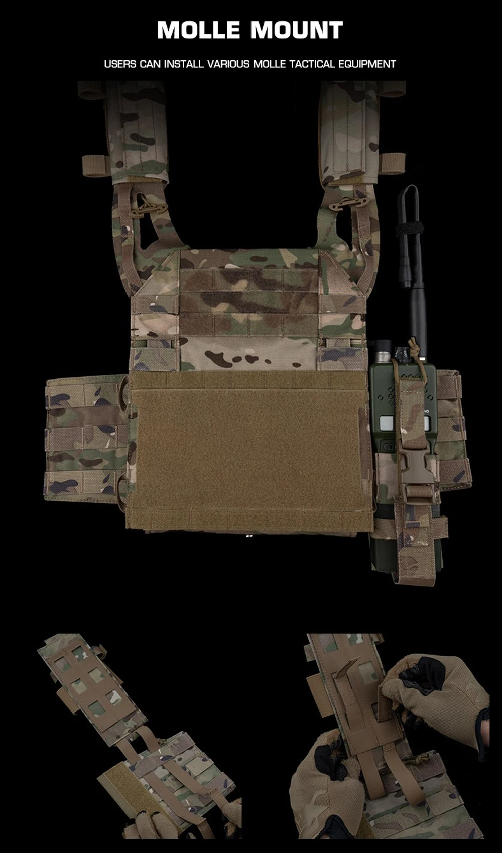 Portador de placa táctica, conjunto de Panel Molle lateral, estilo serie R para chaleco de caza Airsoft, aparejo de pecho, adaptador para bolsa Mag/bolsa de Radio