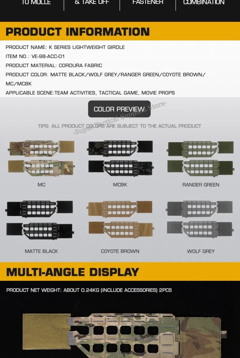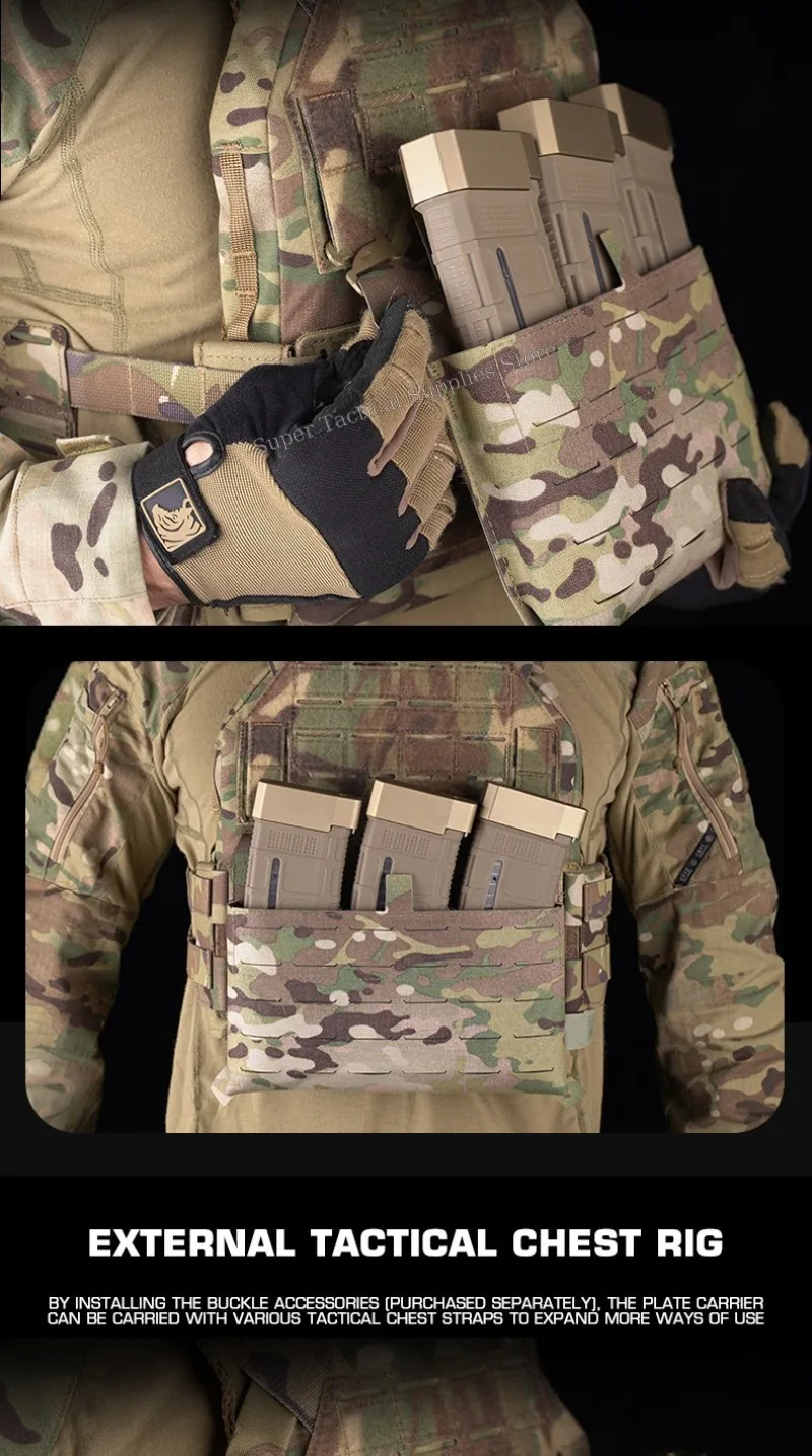 Portador de placa táctica K Zero, chaleco de caza KZ ligero, equipo Airsoft de liberación rápida MOLLE de perfil bajo con faja portadora