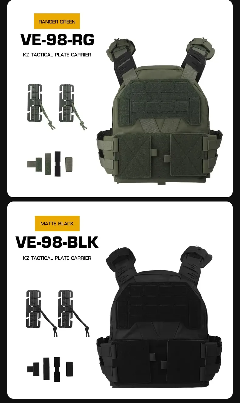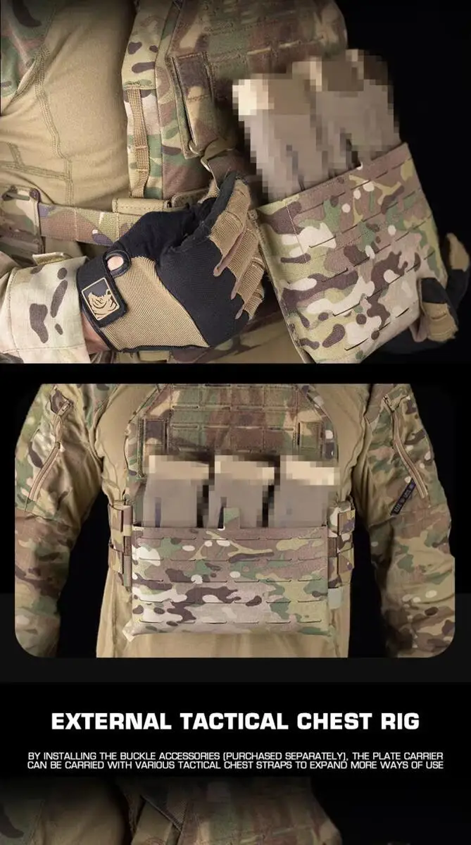 * El chaleco es adecuado para placas antibalas de tamaño mediano 10X12 o SAPI. El producto no viene con placas antibalas; Los usuarios deben comprarlos por separado.