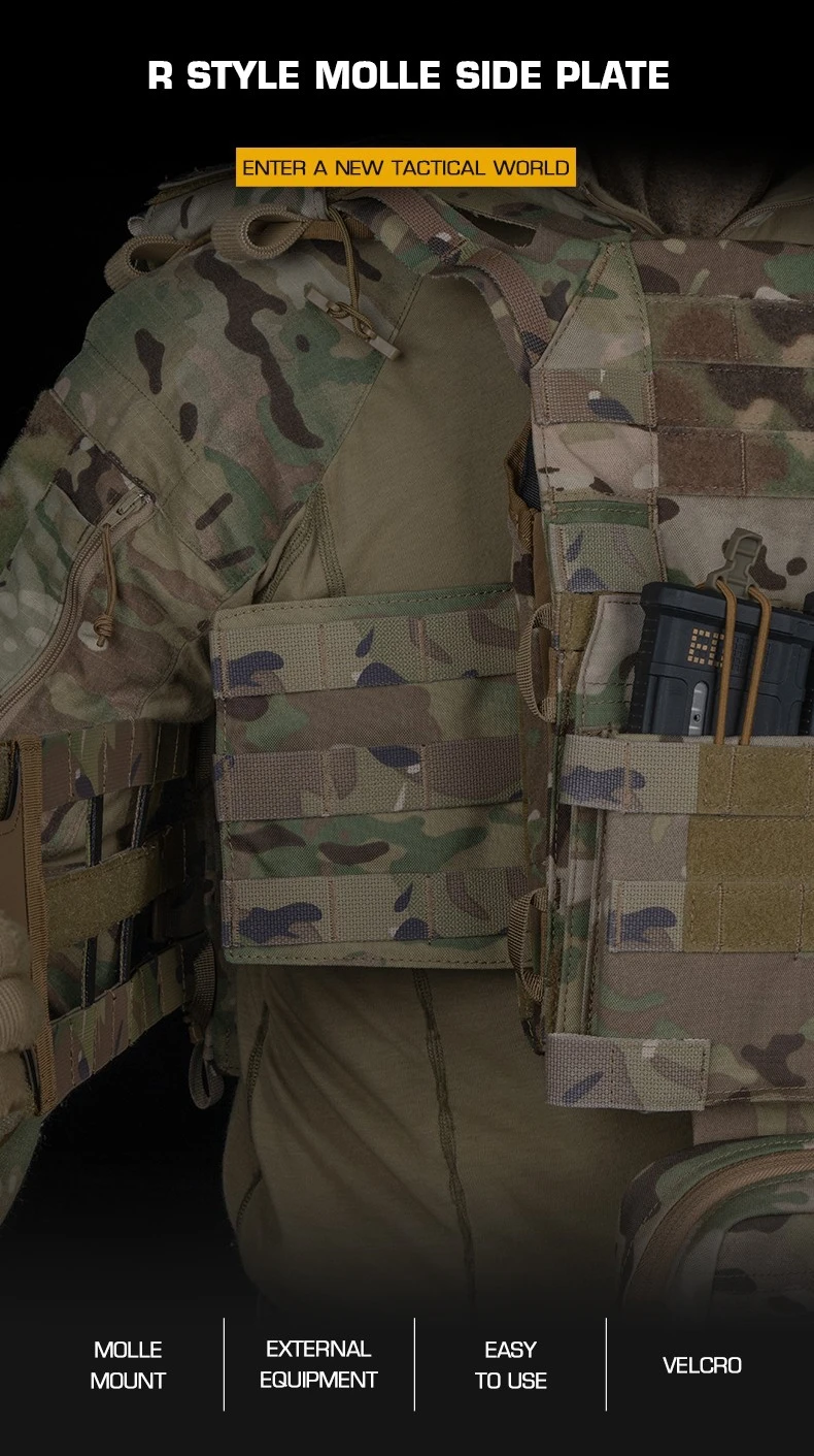 Portador de placa táctica lateral Molle, conjunto de Panel Serie R, chaleco de caza, equipo de aparejo de pecho, bolsa adaptadora, bolsa de radio