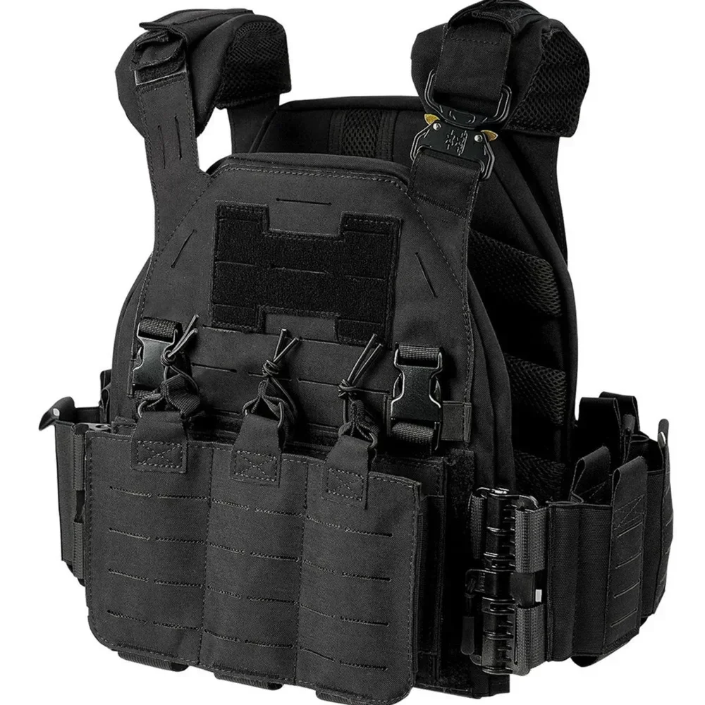 Material: nailon 1000D Tamaño: Chaleco A: aproximadamente 40*30cm Chaleco B: alrededor de 27*33cm El cinturón en sí es estirable y elástico y se puede ajustar. La distancia entre el pecho y la espalda generalmente es de unos 24cm en estado natural sin estiramiento, y la distancia también se puede ajustar mediante el cinturón y la posición de pegado del panel trasero. Características: 1. Baja visibilidad usable por dentro y por fuera. 2. Material de nylon 1000D de alta calidad, secado rápido, transpirable, impermeable, resistente al desgaste. 3. Ligero: incluye placas protectoras EVA insertadas, se puede combinar con otras placas de material (placa de acero/PE/Cerámica, etc.). 4. Sistema de liberación rápida, multifuncional y desmontable según sea necesario. 5. Gran regalo para fanáticos militares y el mejor para el entrenamiento de combate CS al aire libre. 6. Tamaño adecuado: adecuado para una circunferencia de cintura de aproximadamente 80 ~ 120cm, aproximadamente 50 ~ 100kg para un cuerpo normal, se pueden ajustar los hombros y la cintura.