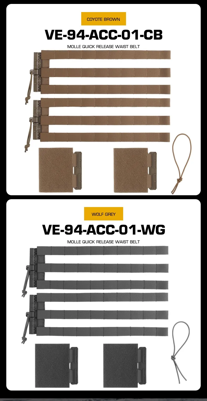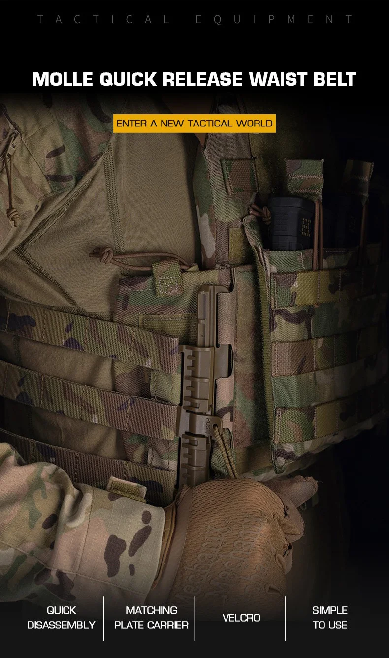 Portador de placa táctica MOLLE TUBES faja cinturón de cintura de liberación rápida accesorios Airsoft