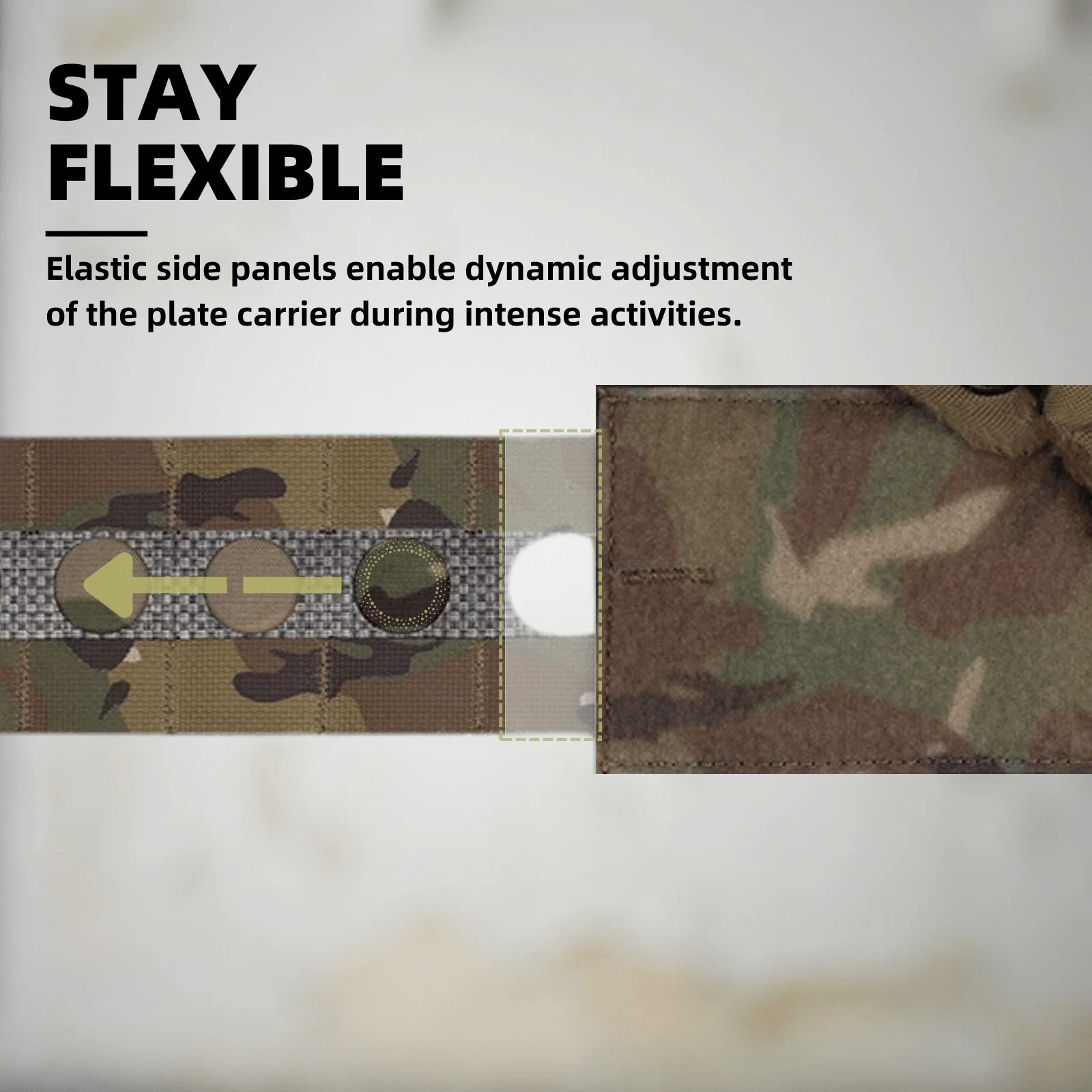 Los paneles laterales elásticos permiten un ajuste dinámico del soporte de placa durante actividades intensas.