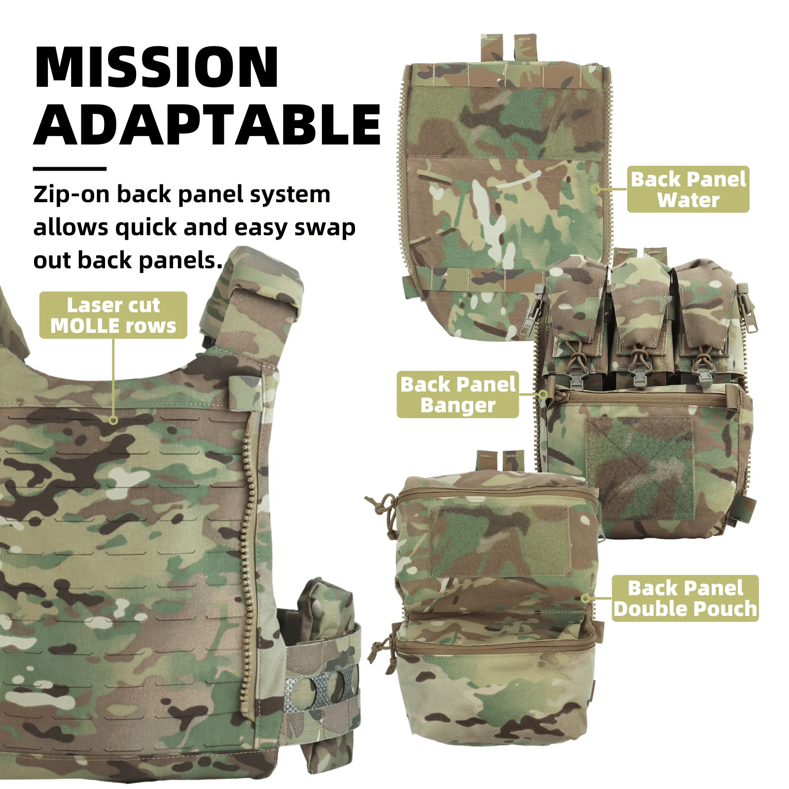 El sistema de panel posterior con cremallera permite intercambiar los paneles traseros de forma rápida y sencilla.