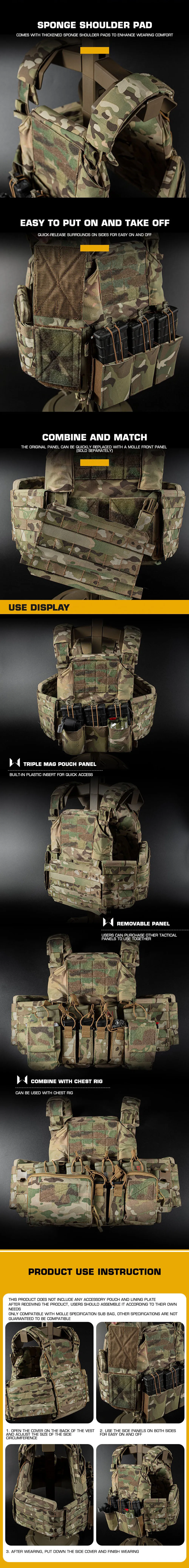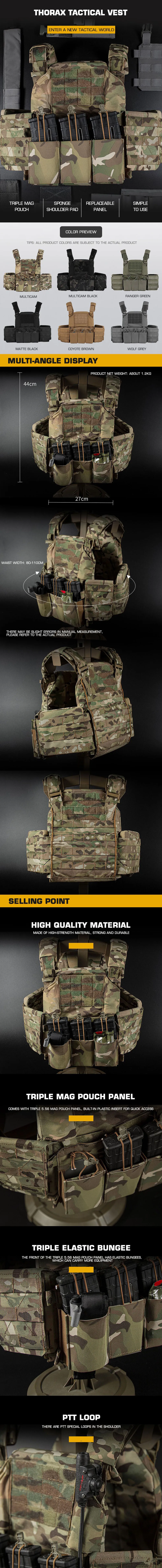 Portaplacas táctico THORAX con bolsa triple para revistas, chaleco de caza de combate MOLLE, bolsa delantera y trasera, equipo Airsoft