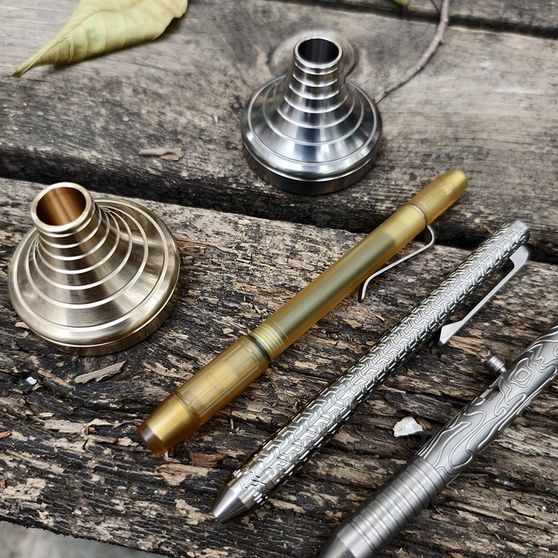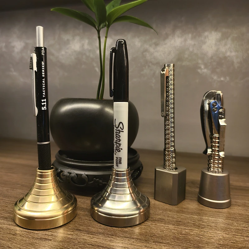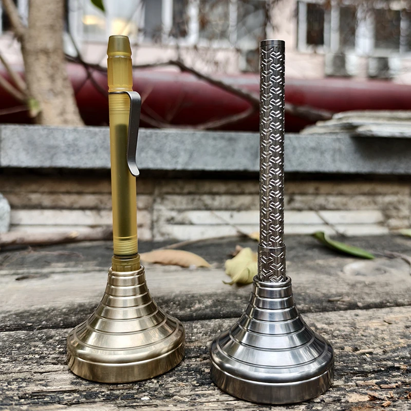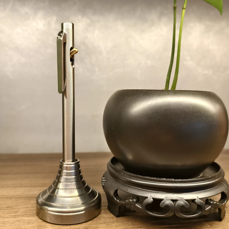 Portalápices de latón de aleación de titanio, portalápices creativo de beso francés, base de metal de inserción de bolígrafo