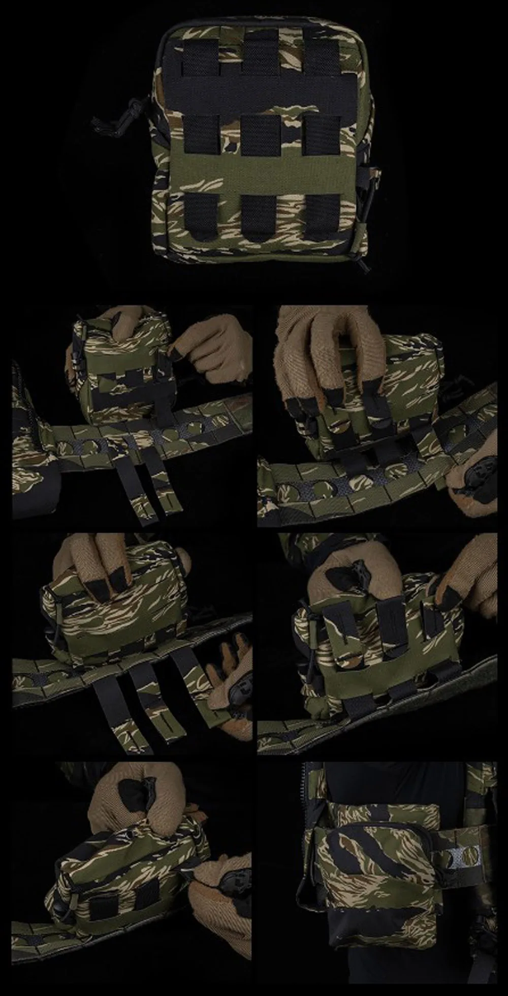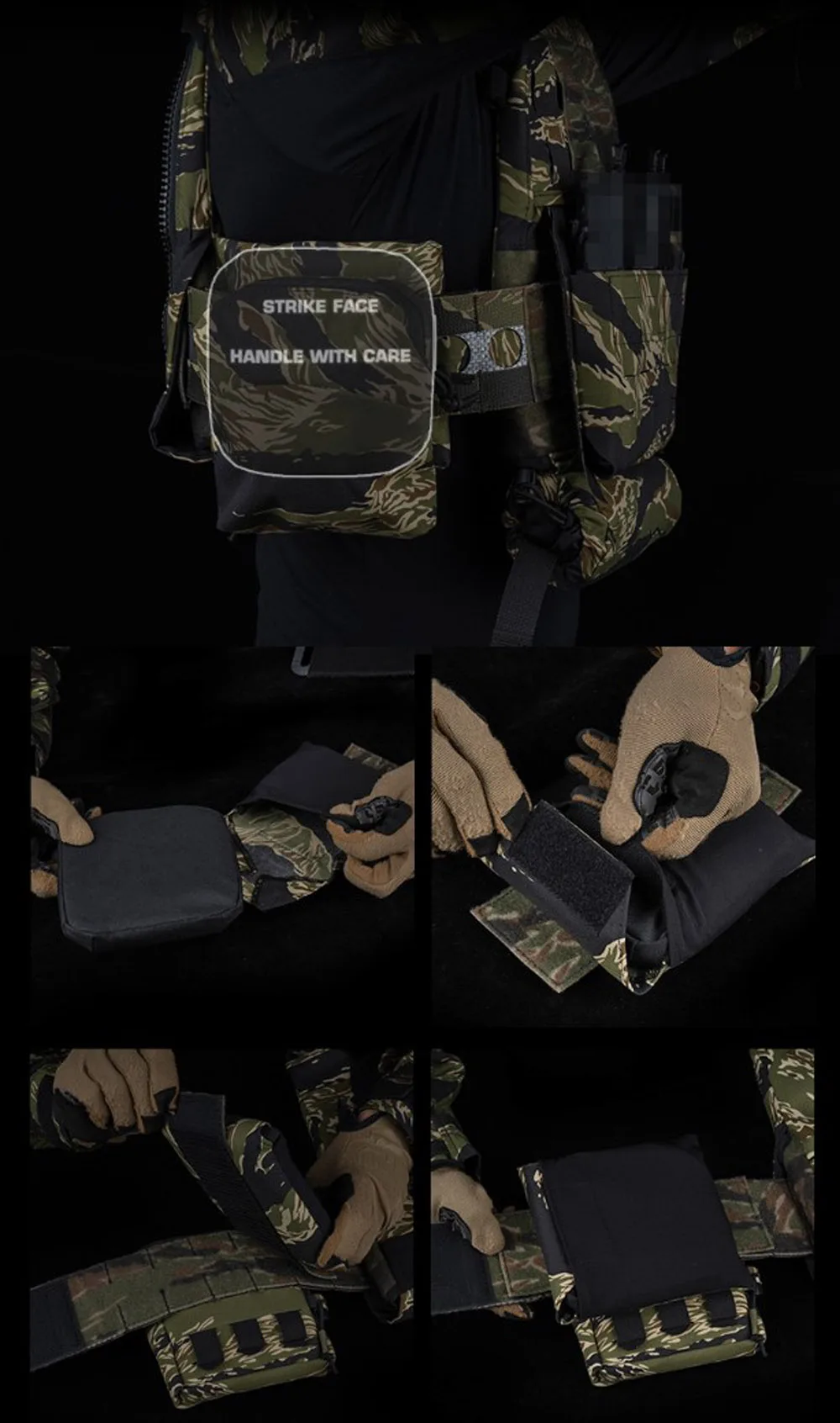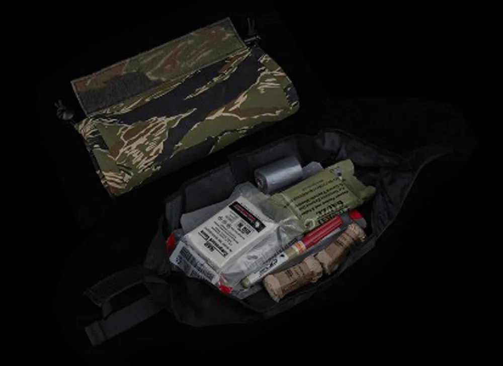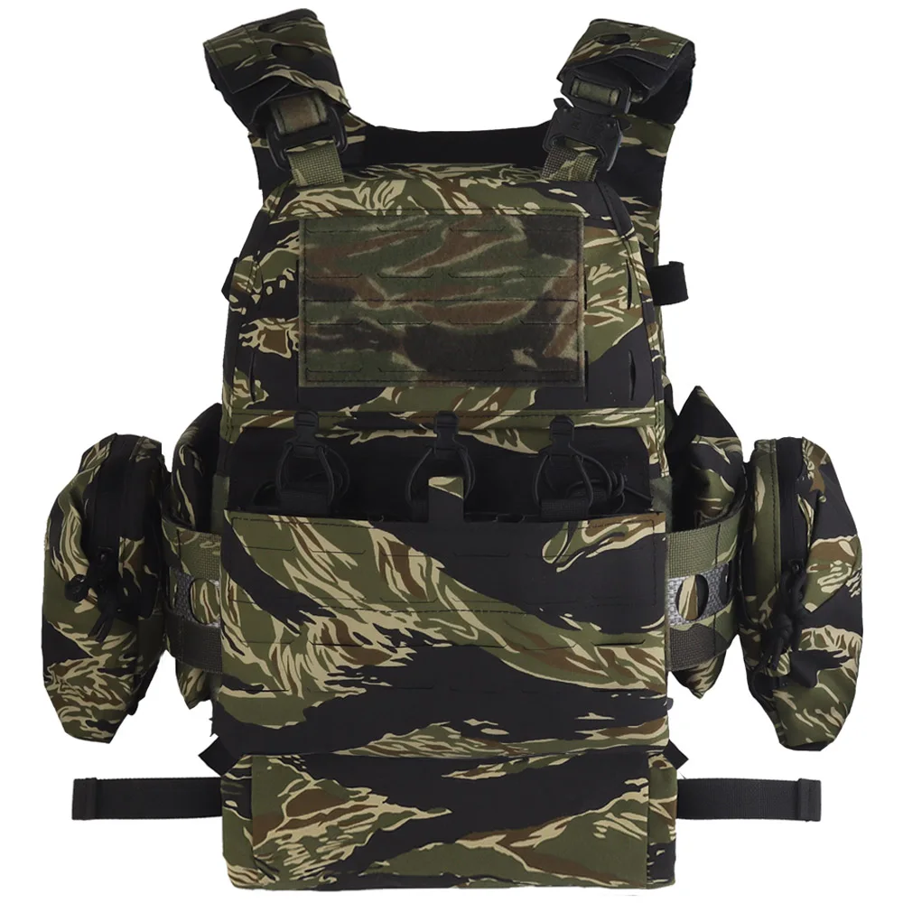 Portaplacas estilo Ferro V5 FCPC, conjunto de camuflaje con rayas de tigre/Woodland con bolsa IFAK Roll 1, bolsa lateral para traumatismos, bolsa Triple Mag