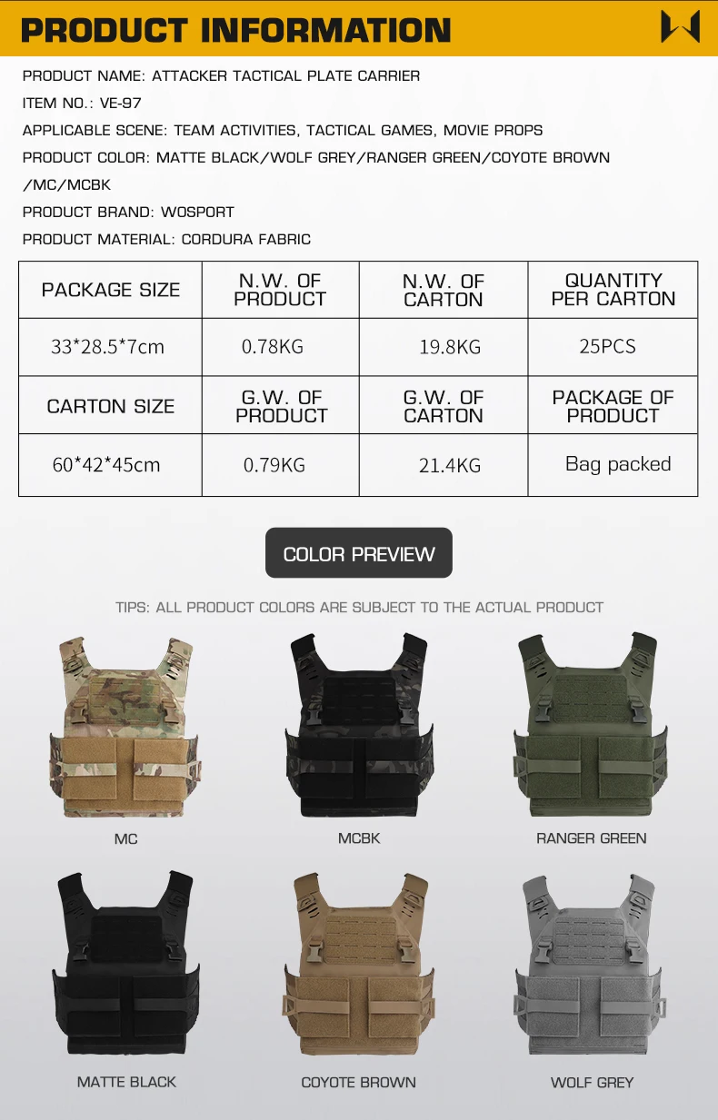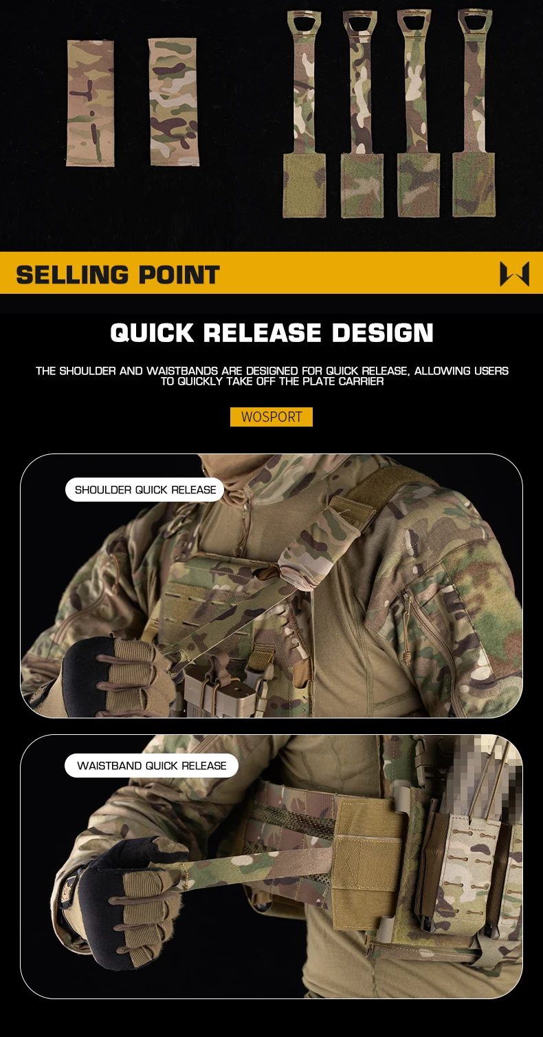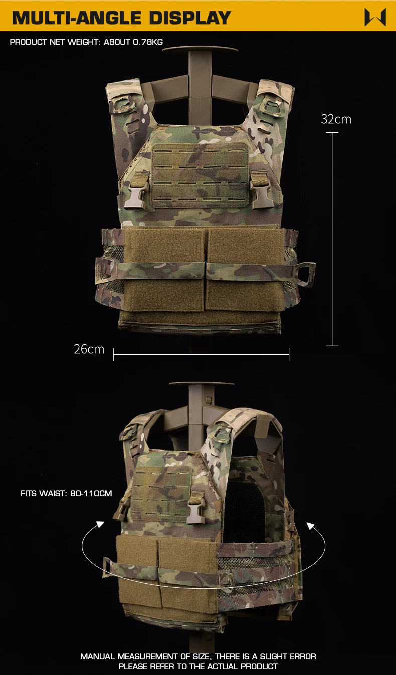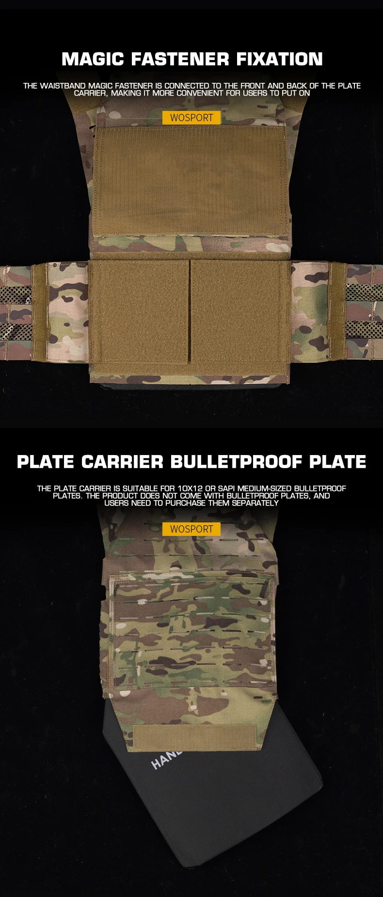 Portador de placa de liberación rápida Cordura MOLLE, chaleco de placa transpirable para accesorios de caza de juegos CS al aire libreInformación del producto: