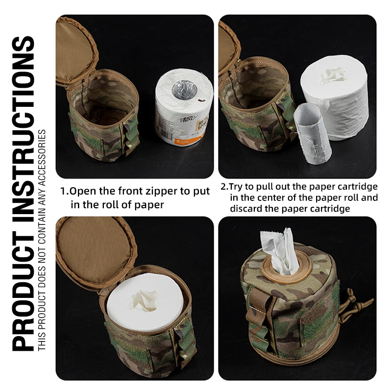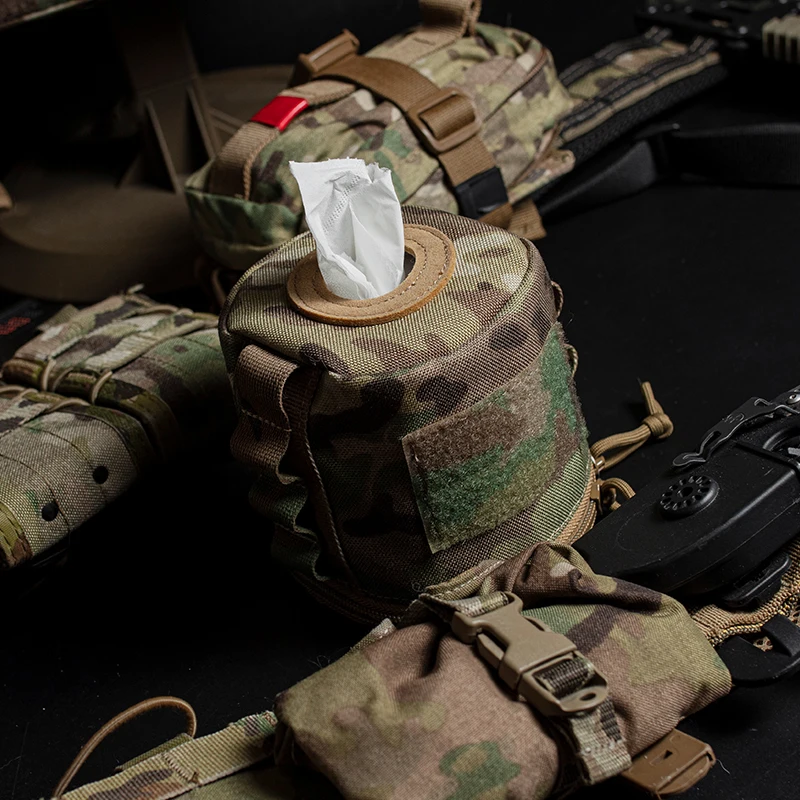 Bolsa táctica para portarrollos de papel higiénico, funda redonda con cremallera YKK, servilletas inferiores, accesorios de caza, equipo militar
