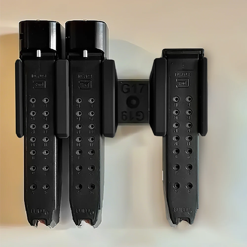 Revistero táctico para montaje en pared, soporte para revistas, compatible con Glock 17 19 3/4/5 ranuras, estante de almacenamiento para revistas, accesorios de munición de pistola