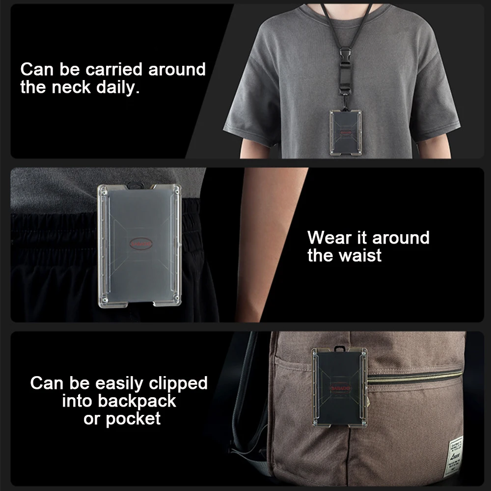 Portatarjetas T4 para exteriores, portatarjetas de identificación, billetera duradera, ranura para 4 tarjetas alrededor del cuello, cordón con Clip de Metal para mochila, bolsillo ABS