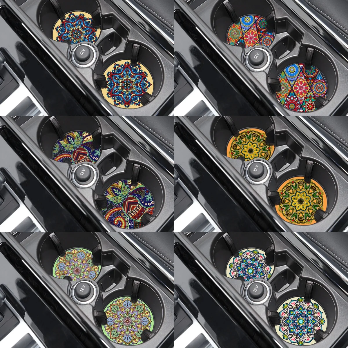 Portavasos Vintage con flor de Mandala para coche, posavasos redondos antideslizantes para Yoga, accesorios de Interior de coche para mujer, 2 uds.