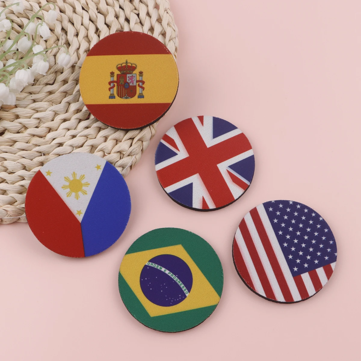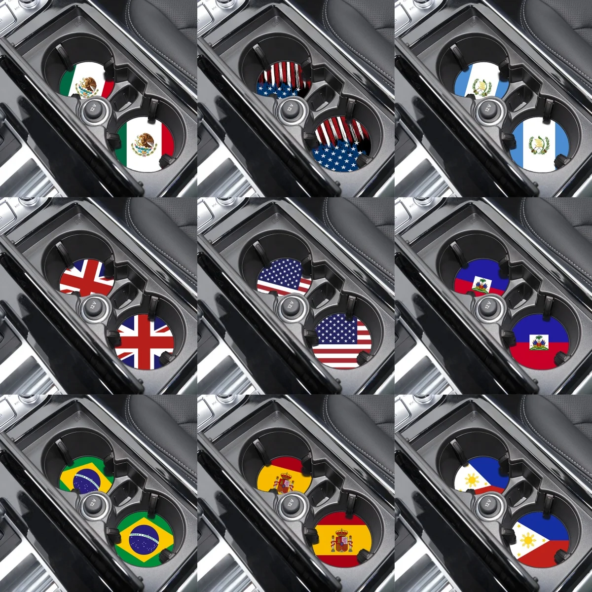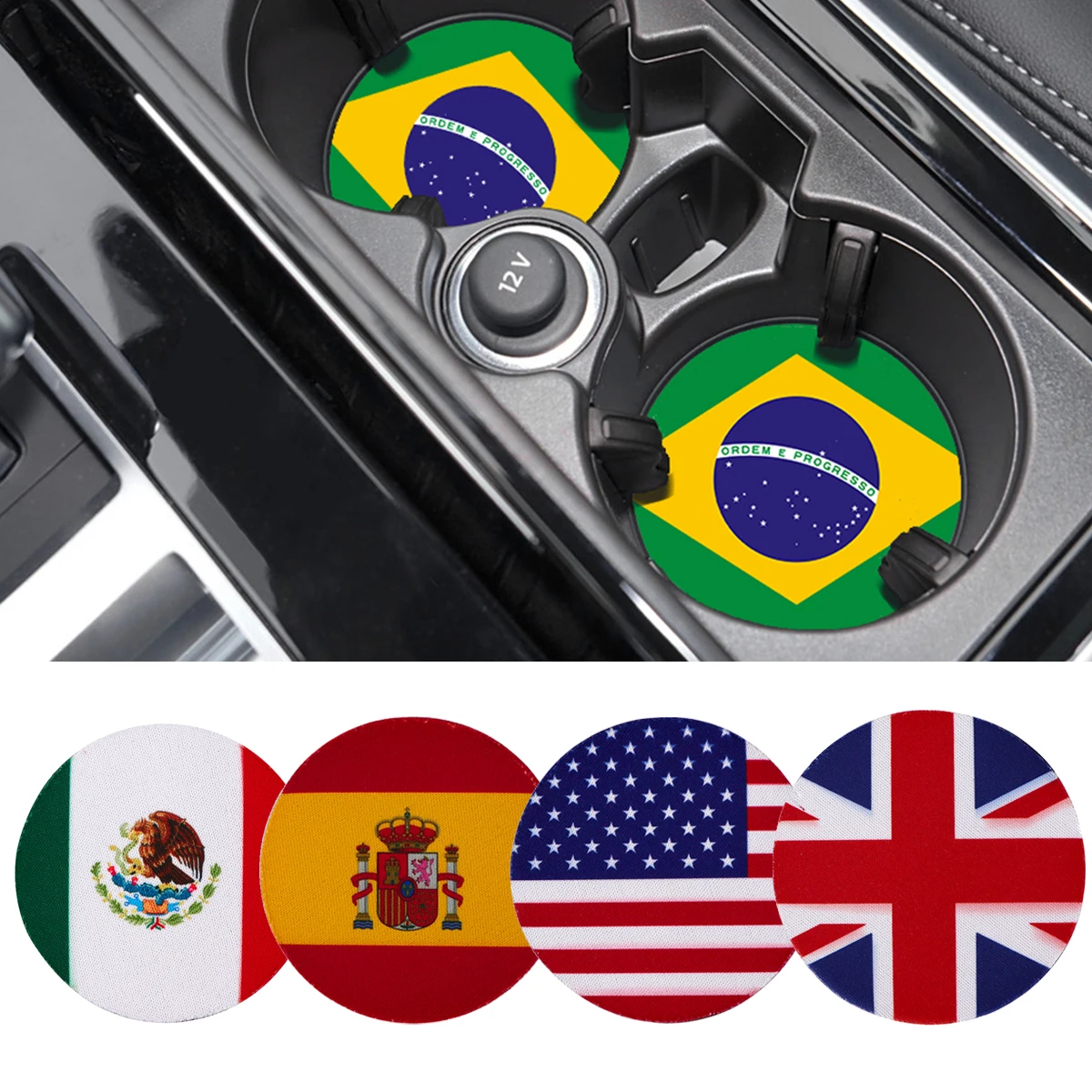 Posavasos con banderas nacionales para coche, posavasos con bandera de España y México, tapete antideslizante para taza de agua, accesorios de Interior de coche, 2 uds.