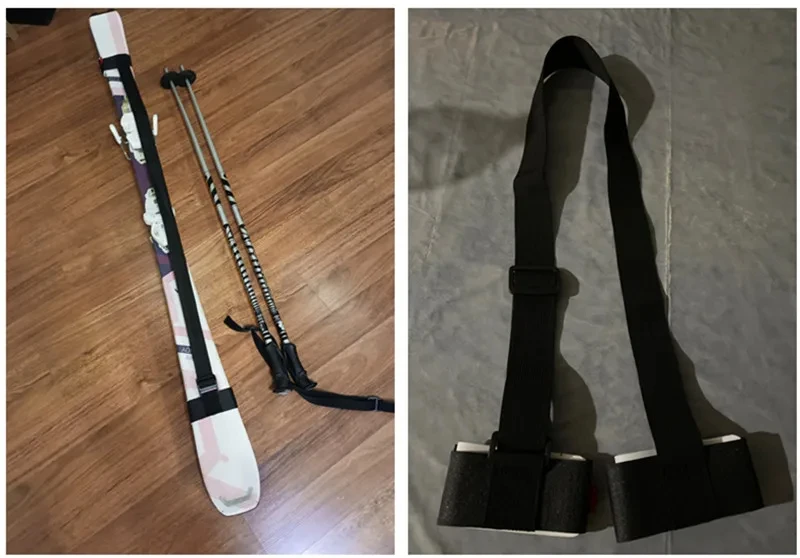 Portador de mano ajustable para hombro y poste de esquí, correas con mango de pestañas, bolsas de esquí de nailon, protección con bucle de gancho para llevar para esquí y Snowboard