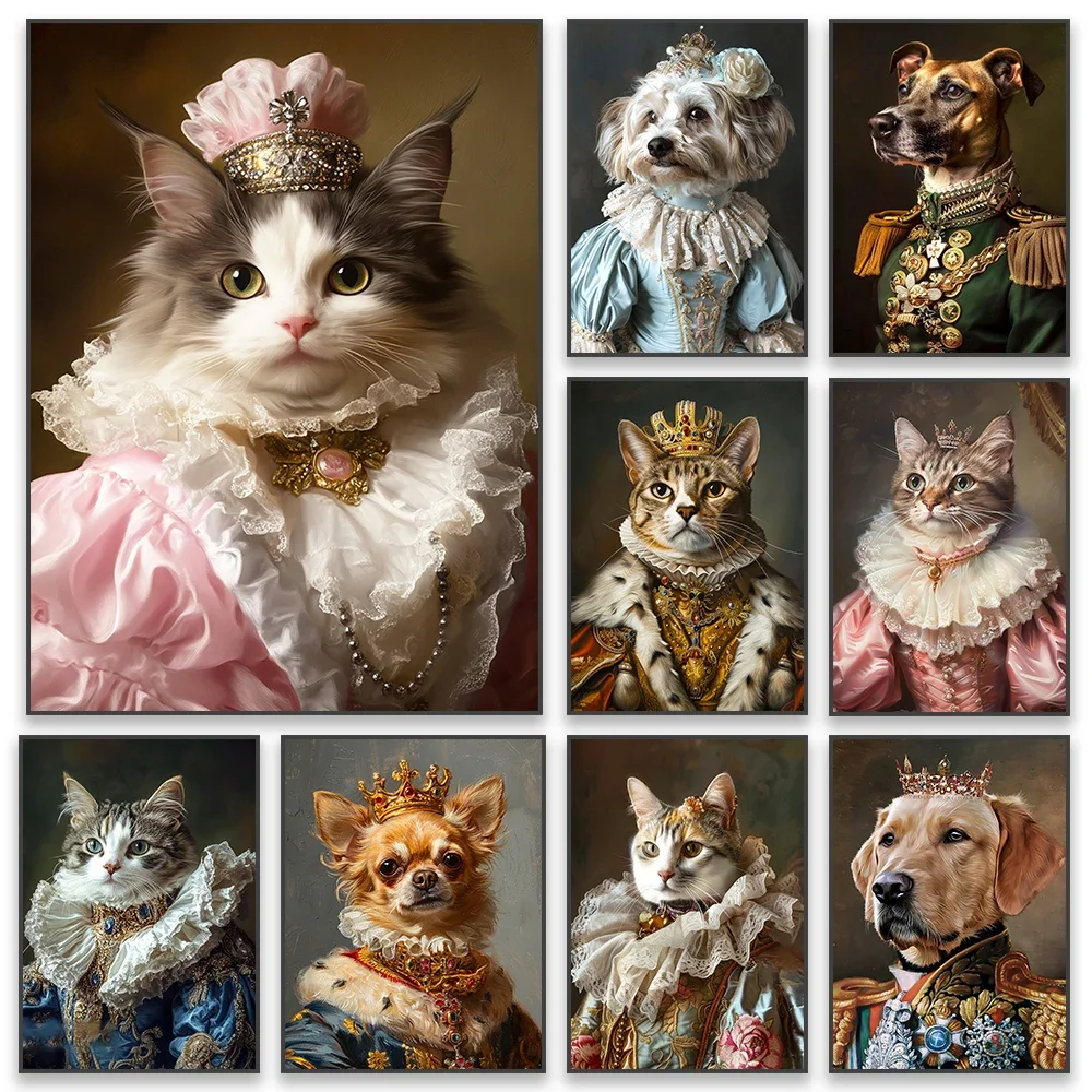 Póster personalizado con retrato de mascota real, perro renacentista personalizado, impresiones fotográficas, pintura en lienzo, regalo para habitación de gatos, diciembre