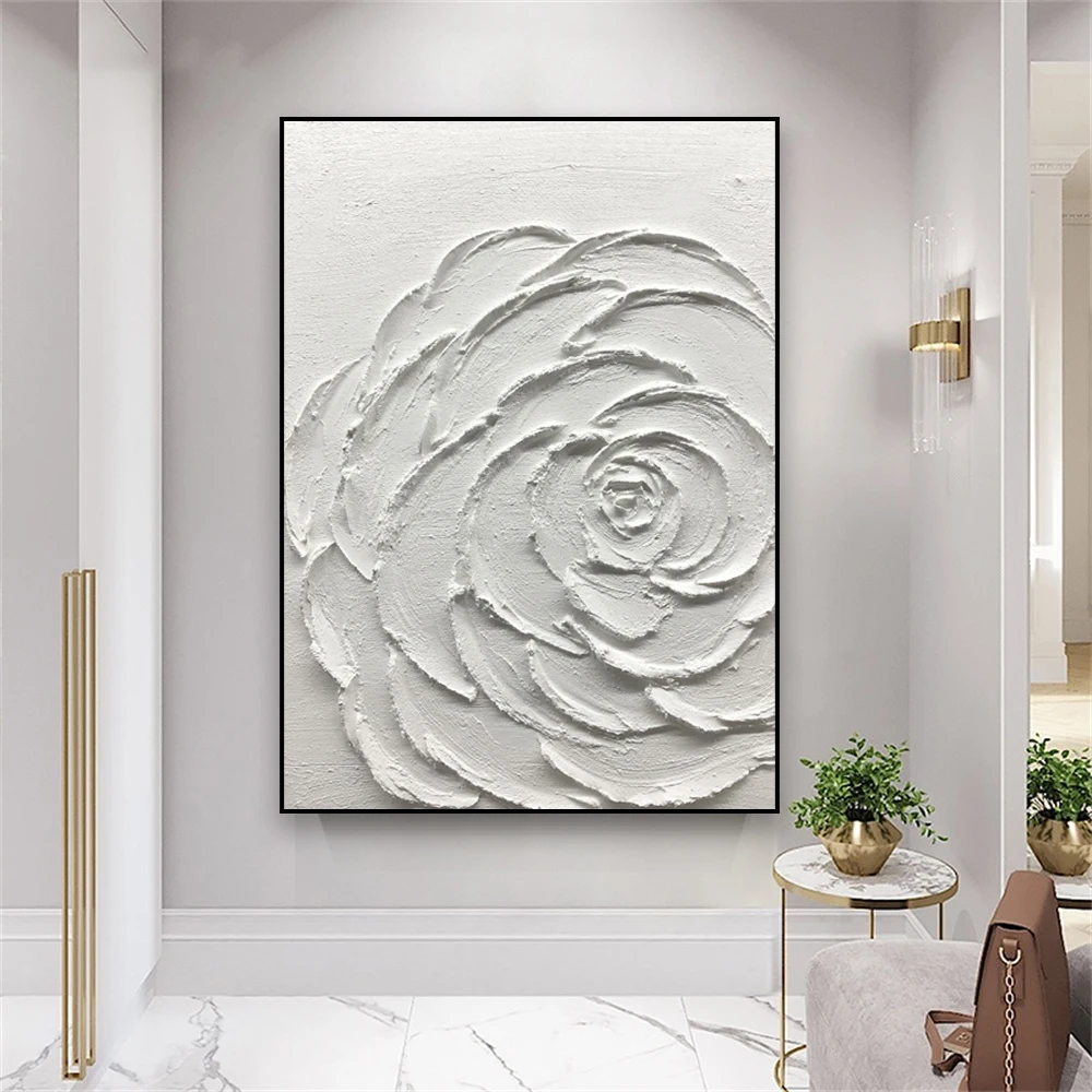 Póster de pintura de flores con textura blanca, arte de pared minimalista con textura pesada, impresiones en lienzo, decoración para el hogar y la sala de estar