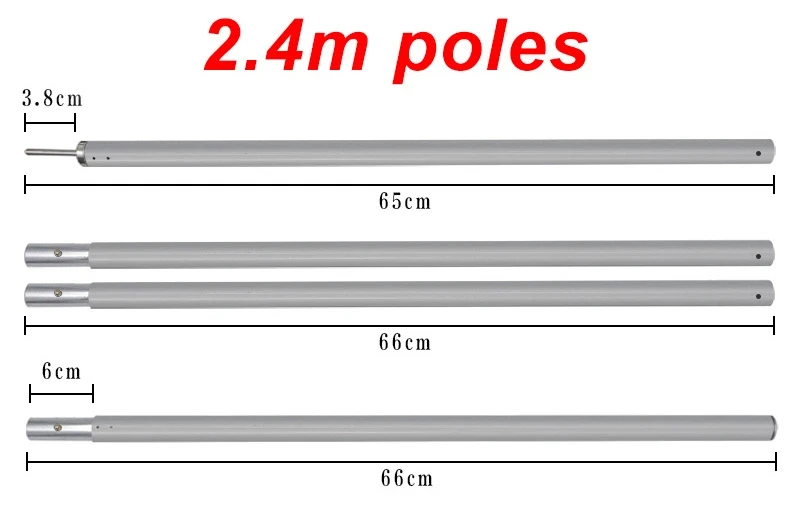 5. Cada poste tiene 4 secciones, la versión de 2,4 m es de 66cm/sección, puede obtener diferentes alturas combinando 1-4 piezas.