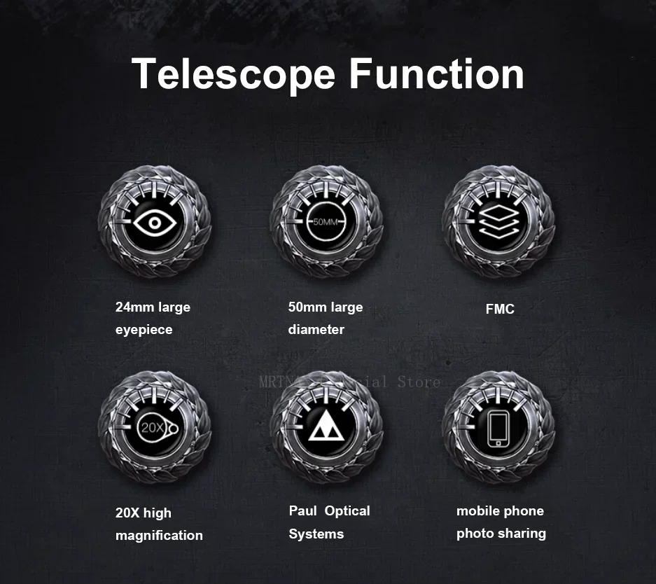 Potente telescopio 20X50 binoculares profesionales baja luz telescopio de largo alcance para exteriores equipo de caza y Camping
