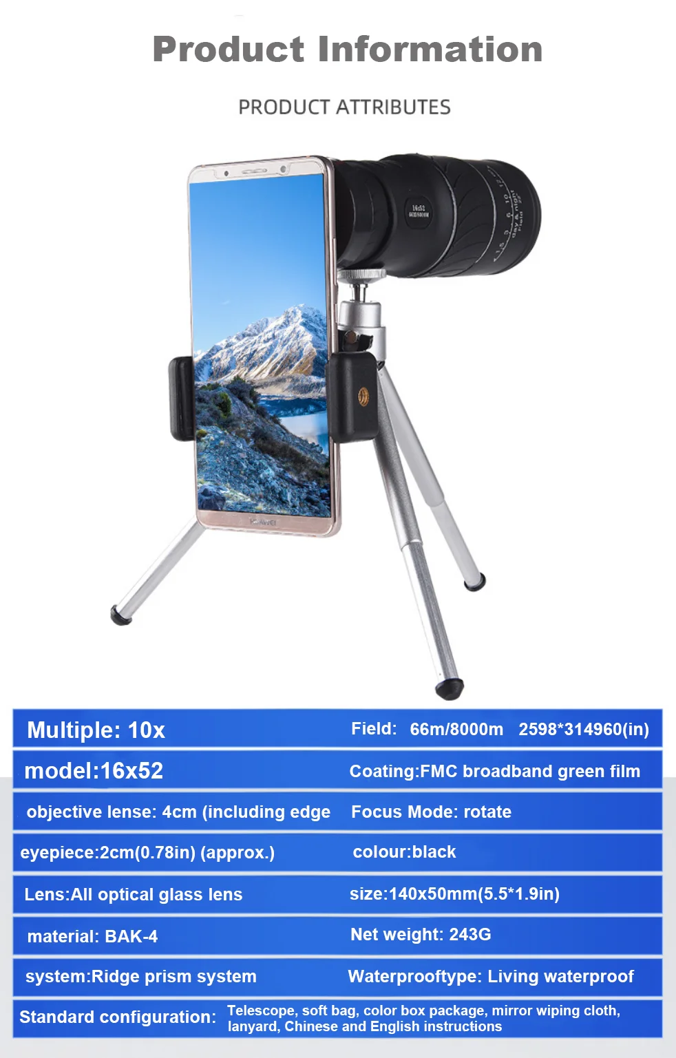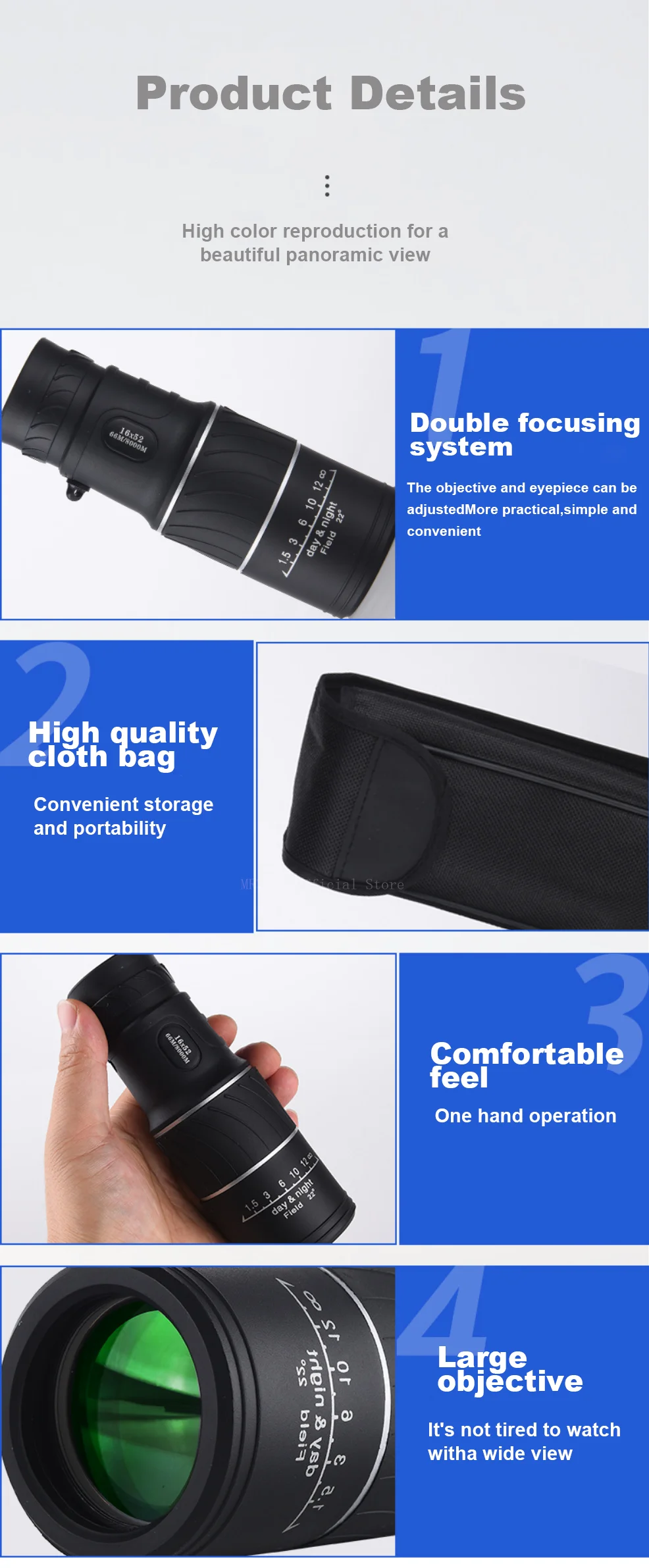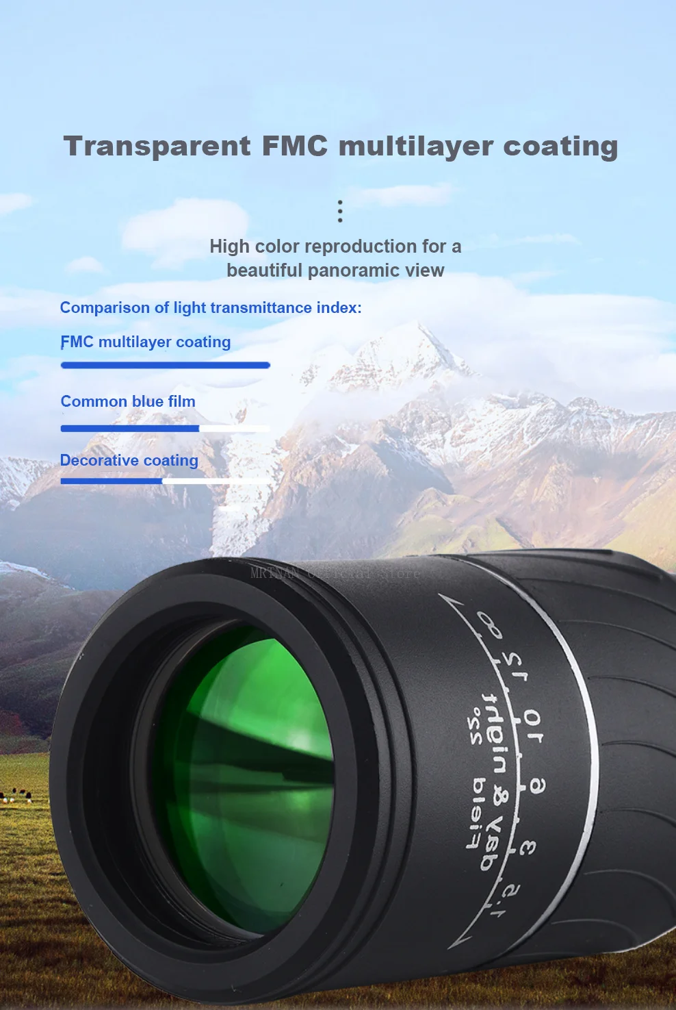 Potente telescopio monocular, binoculares con Zoom de 16x52, visor nocturno de largo alcance para observación de aves de acampada al aire libre