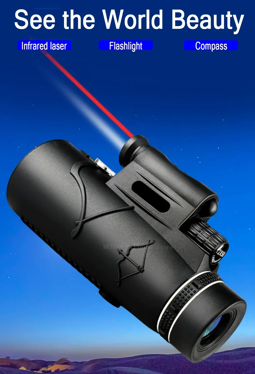 Binoculares potentes HD con Zoom 50X60, telescopio profesional portátil de largo alcance, monocular, visión nocturna baja para caza