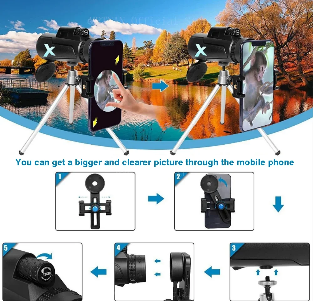 Este monocular viene con una bolsa portátil que brinda protección contra golpes, sacudidas y rayones para prolongar su vida útil.